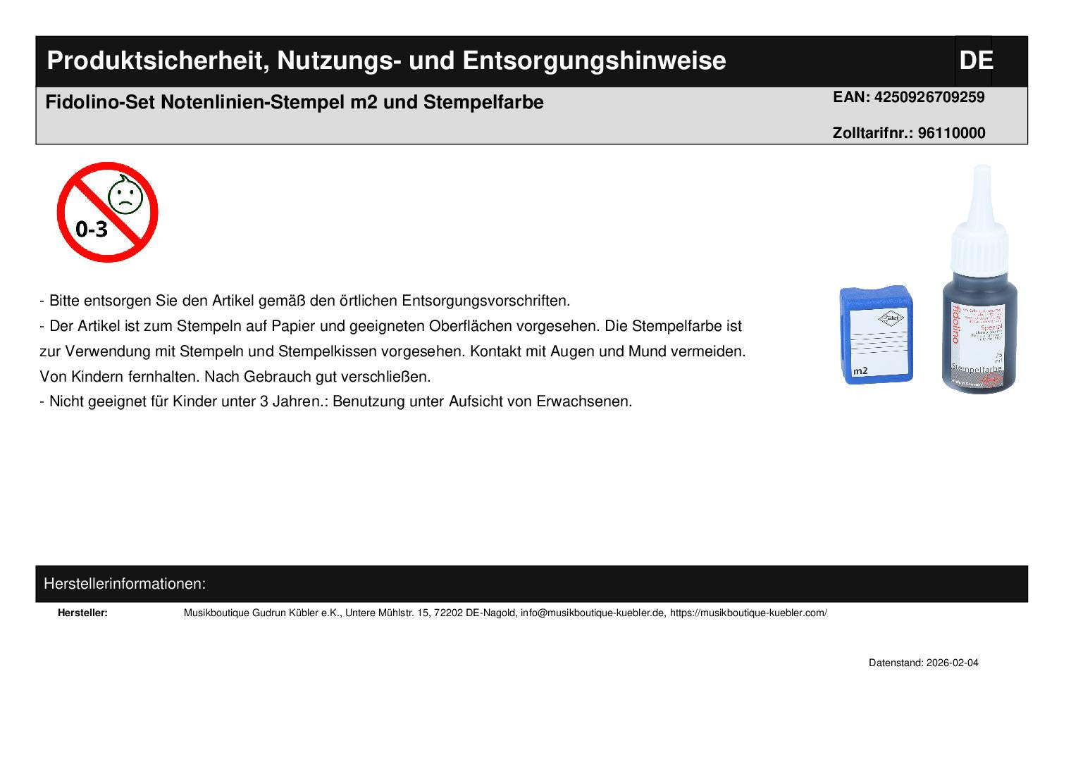 Special stamp ink for our Fidolino music line stamps. The print dries immediately - no smudging.