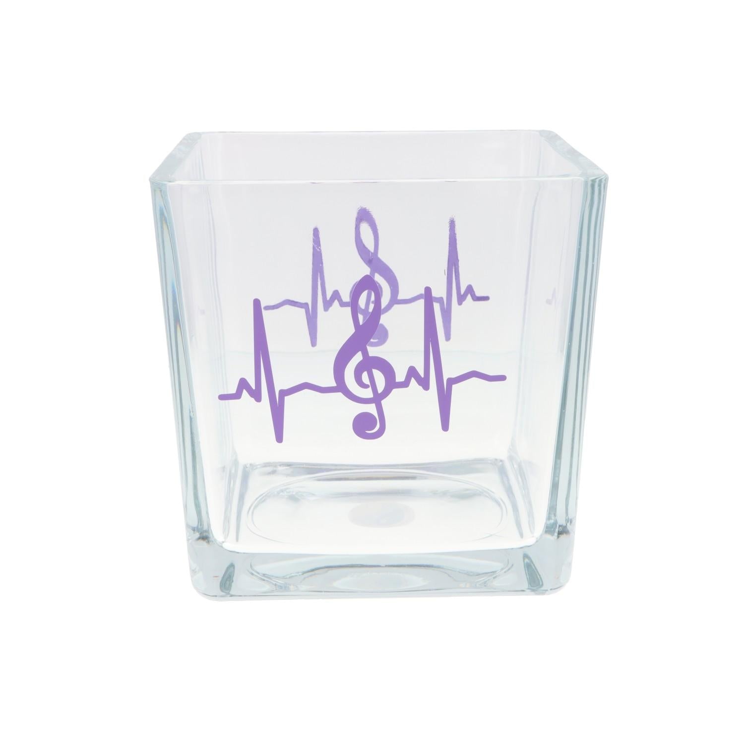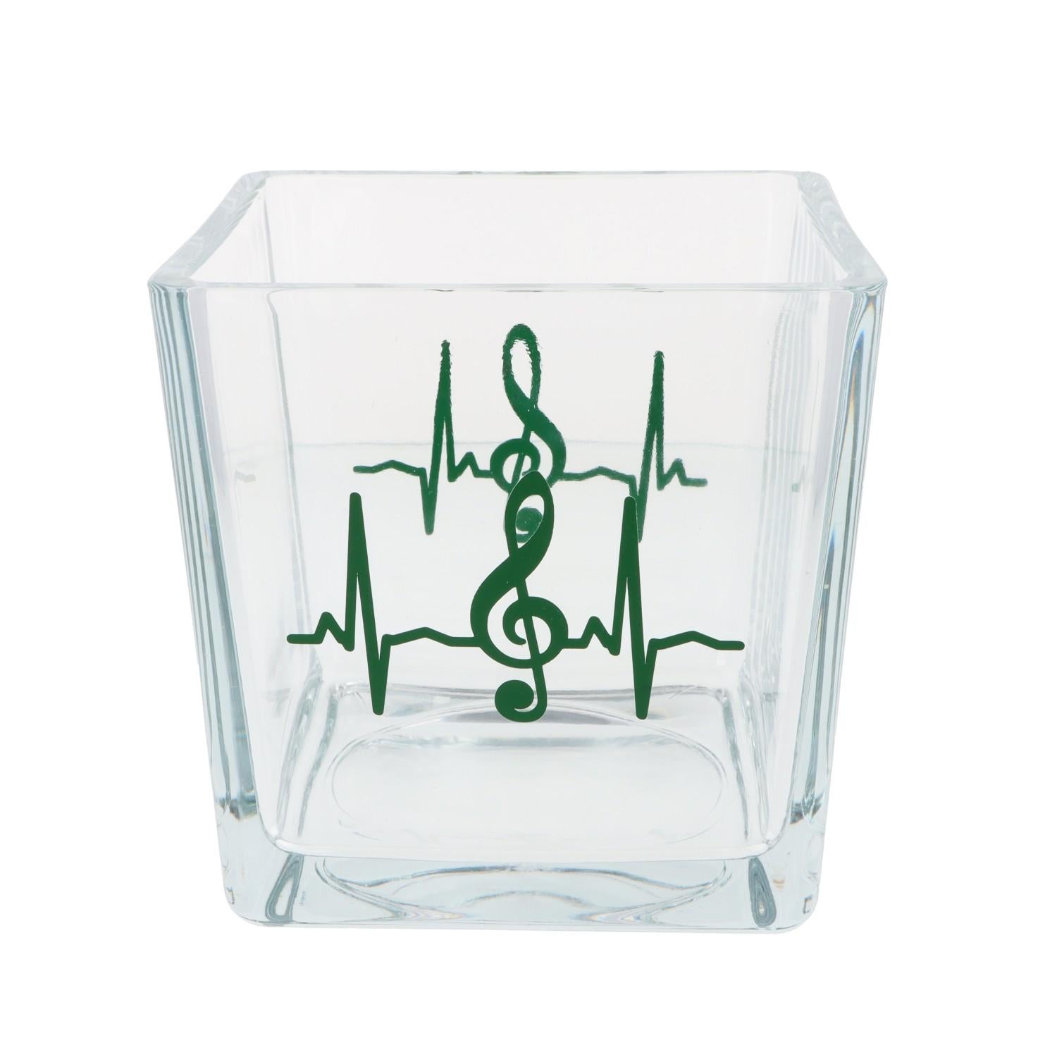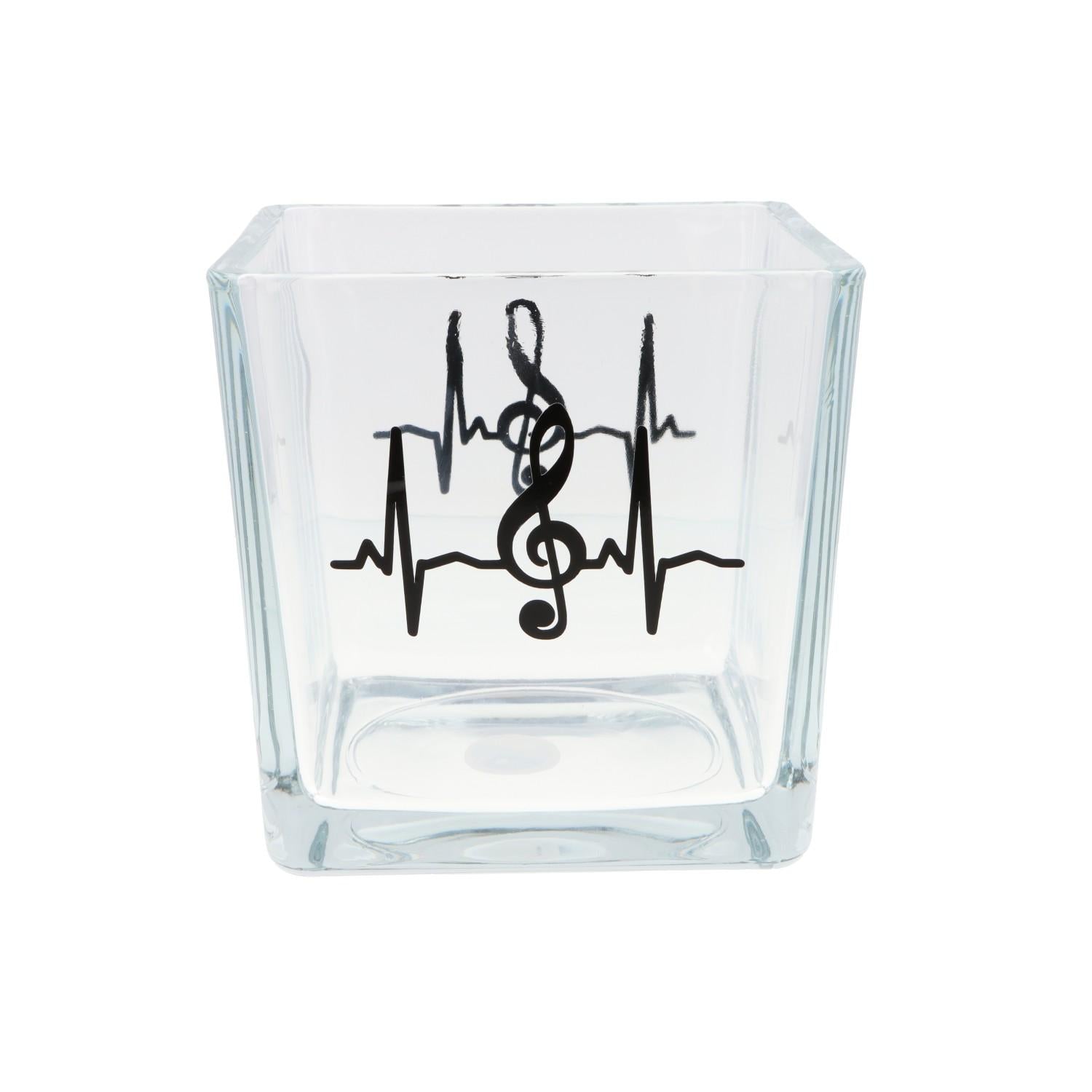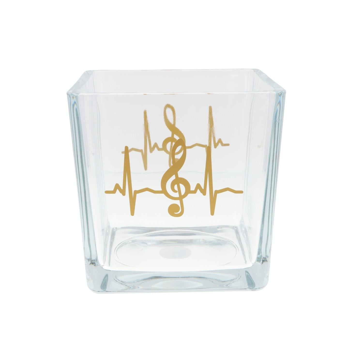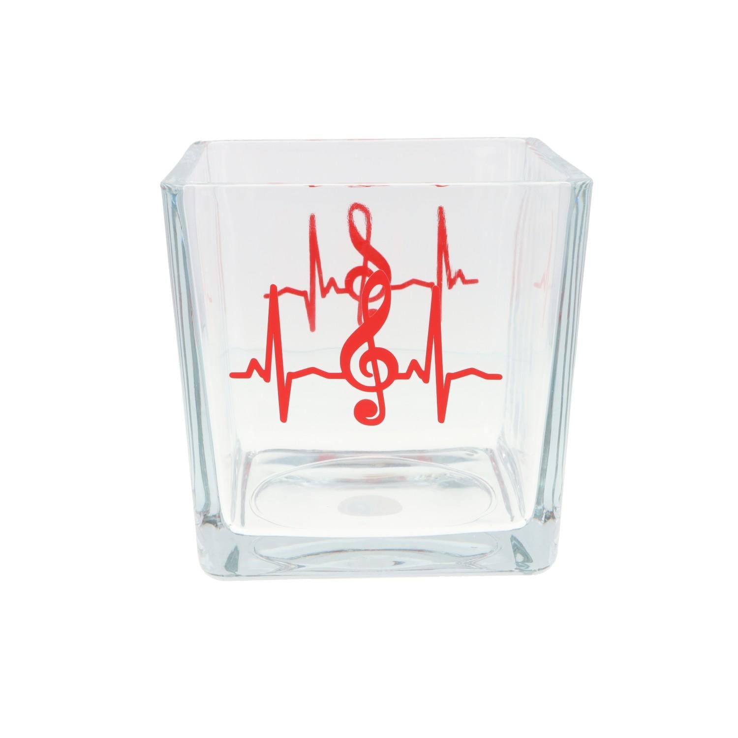 Glas-Vase mit Herzschlag und Violinschlüssel