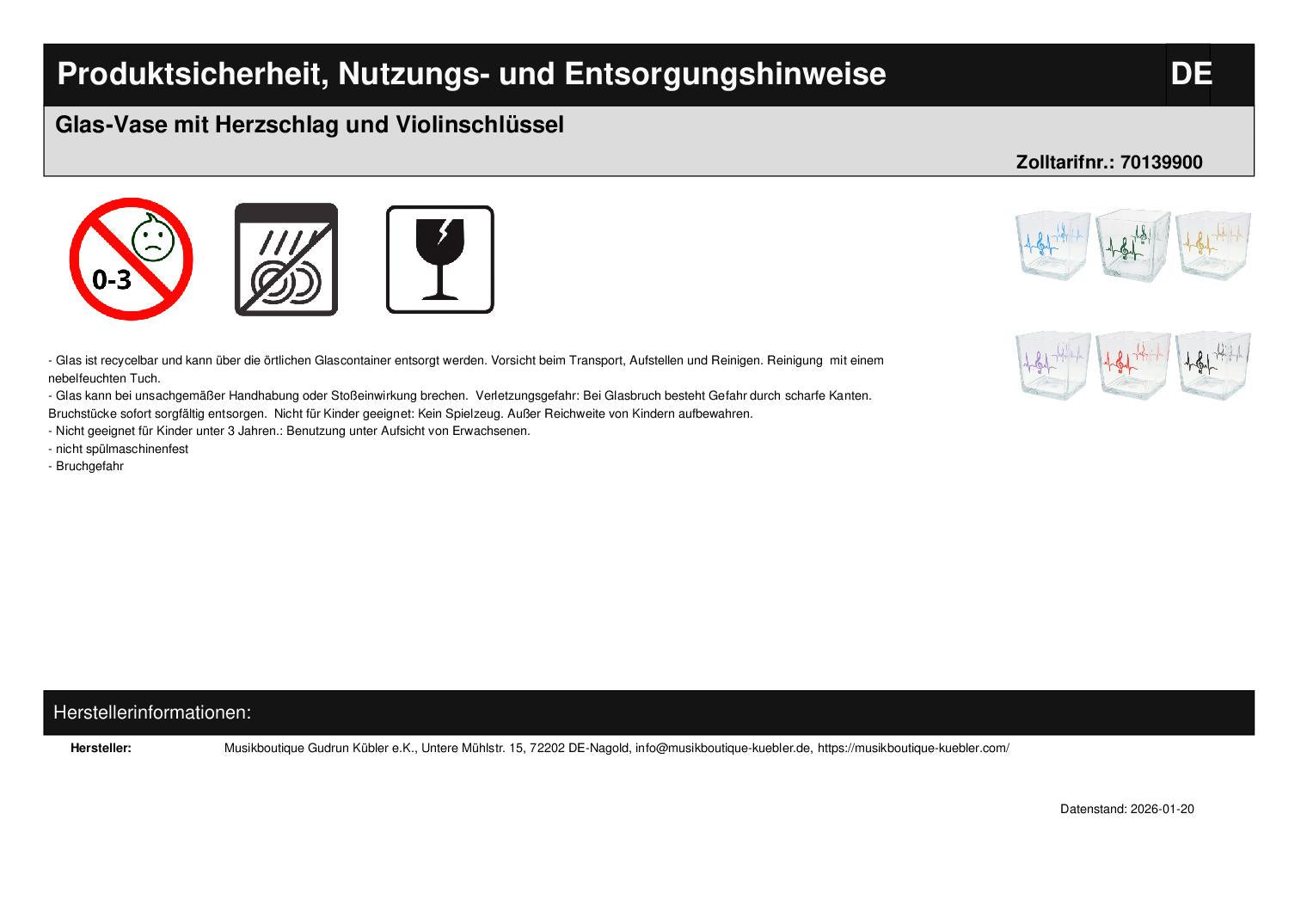 Entdecken Sie die exquisite musikalische Glas-Vase, die durch ihre einzigartigen Verzierungen mit Herzschlag und Violinschlüssel zum Hingucker in jedem Raum wird und Ihr Blumenarrangement perfekt zur Geltung kommen lässt.