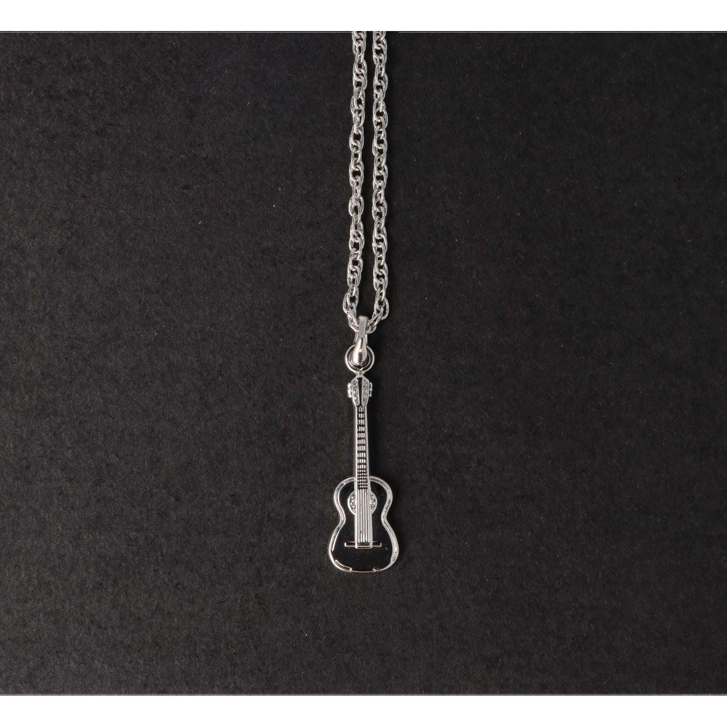 Konzertgitarre-Anhänger, mit Kette, versilbert