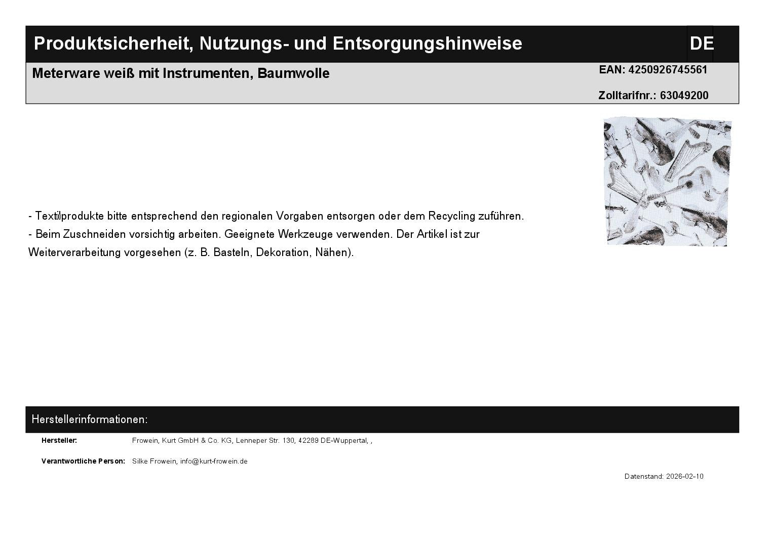 Meterware white with instruments, cotton