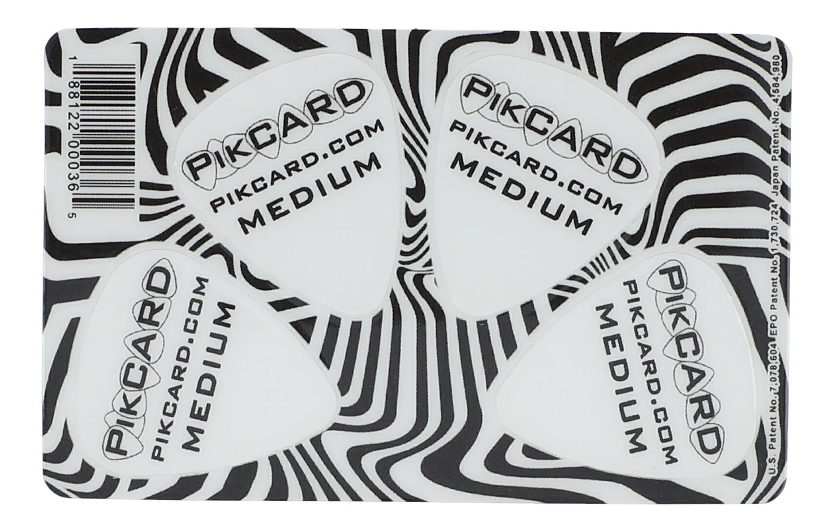 Pick card with 4 credit card sized picks, fits in any wallet or gig bag. Simply remove the pick from the card and press it back into the card after use.