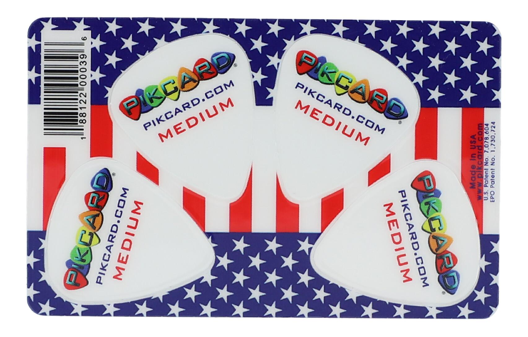 Pick card with 4 credit card sized picks, fits in any wallet or gig bag. Simply remove the pick from the card and press it back into the card after use.