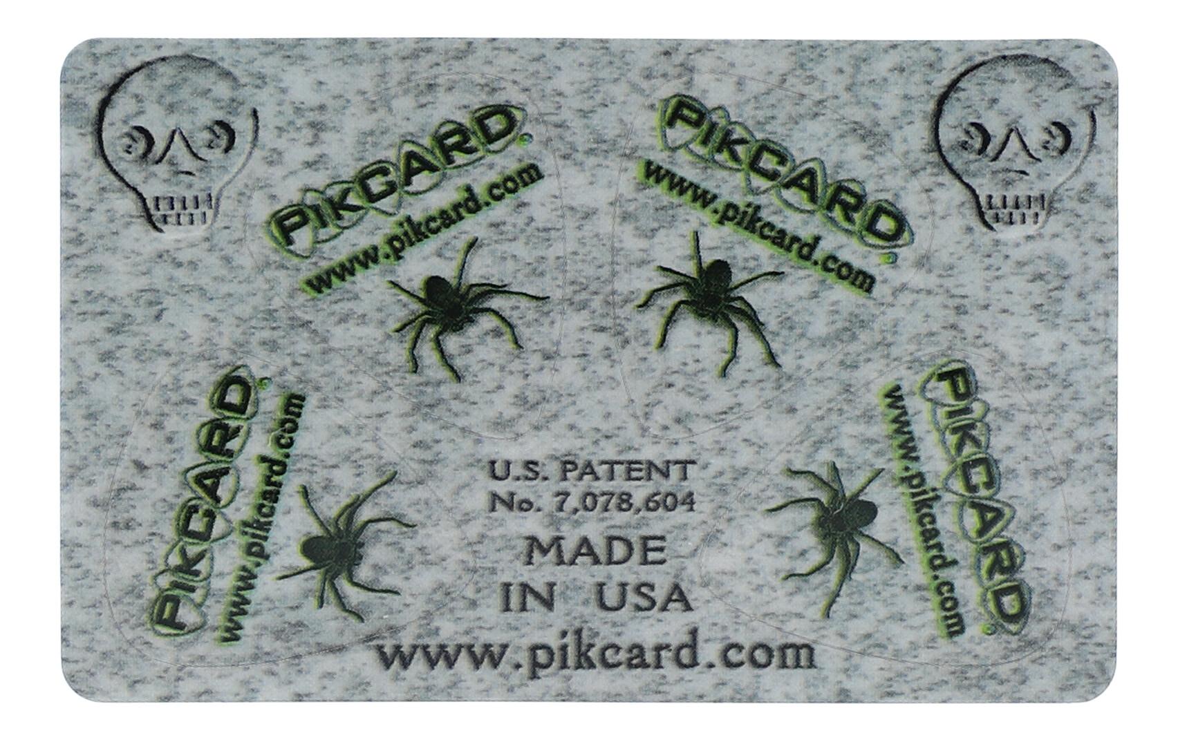 Pick card with 4 credit card sized picks, fits in any wallet or gig bag. Simply remove the pick from the card and press it back into the card after use.
