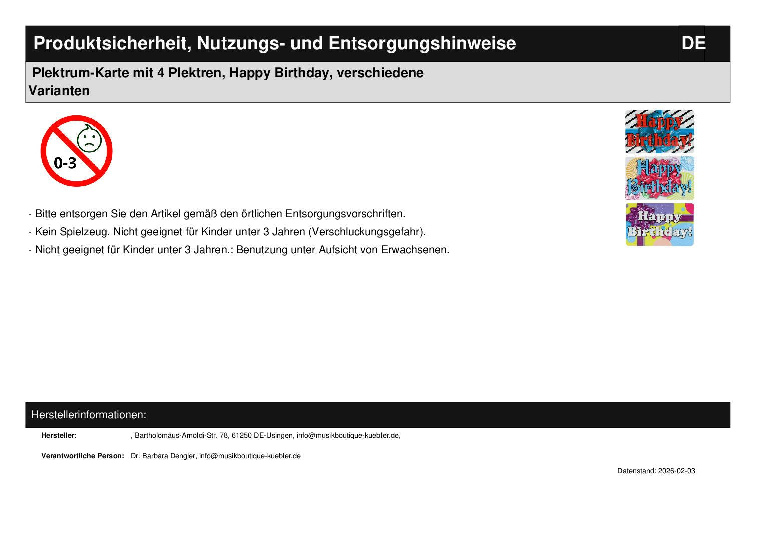 Plectrum card with 4 plectrums, Happy Birthday, various versions