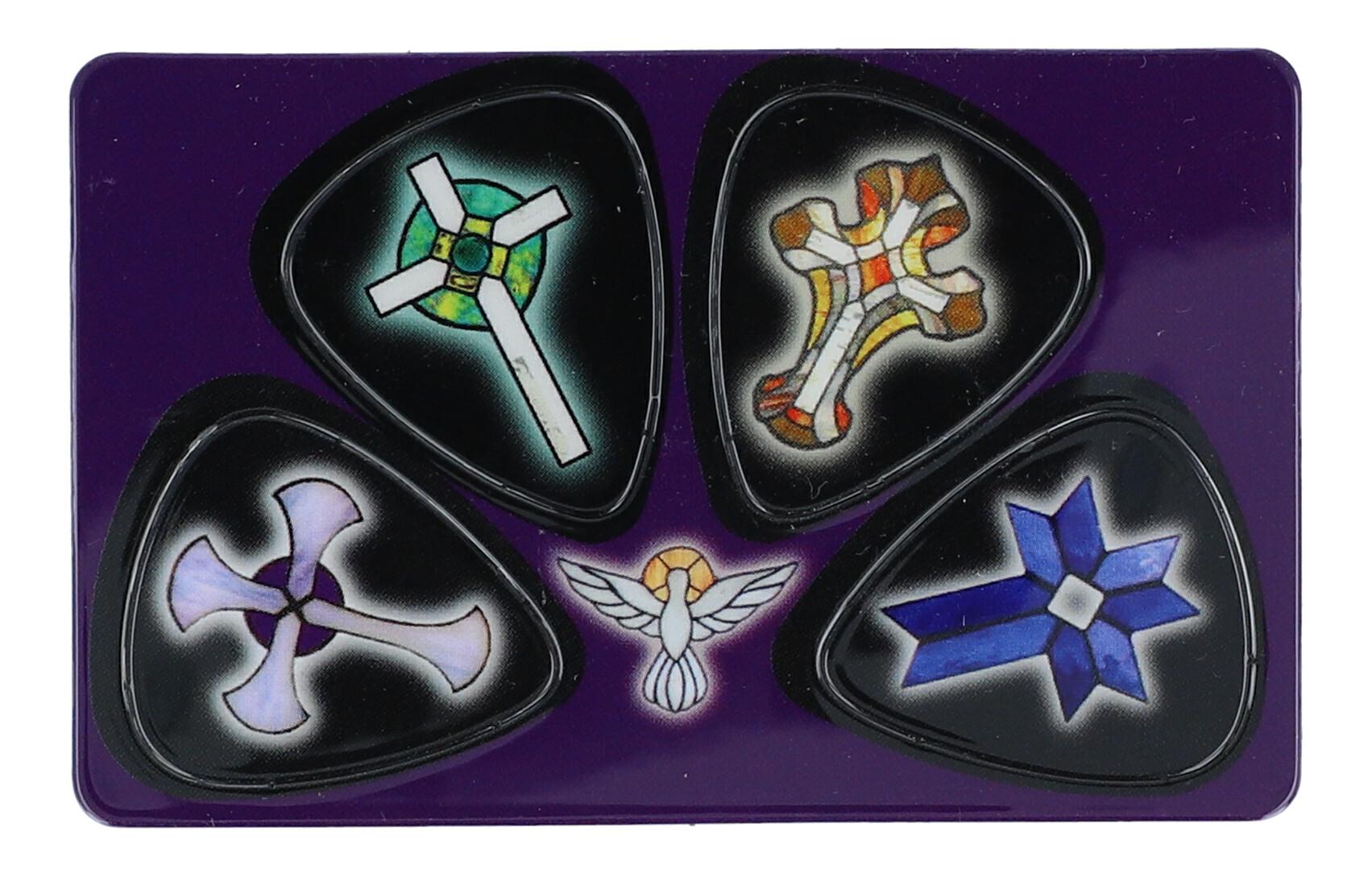 Plectrum card with 4 picks, cross