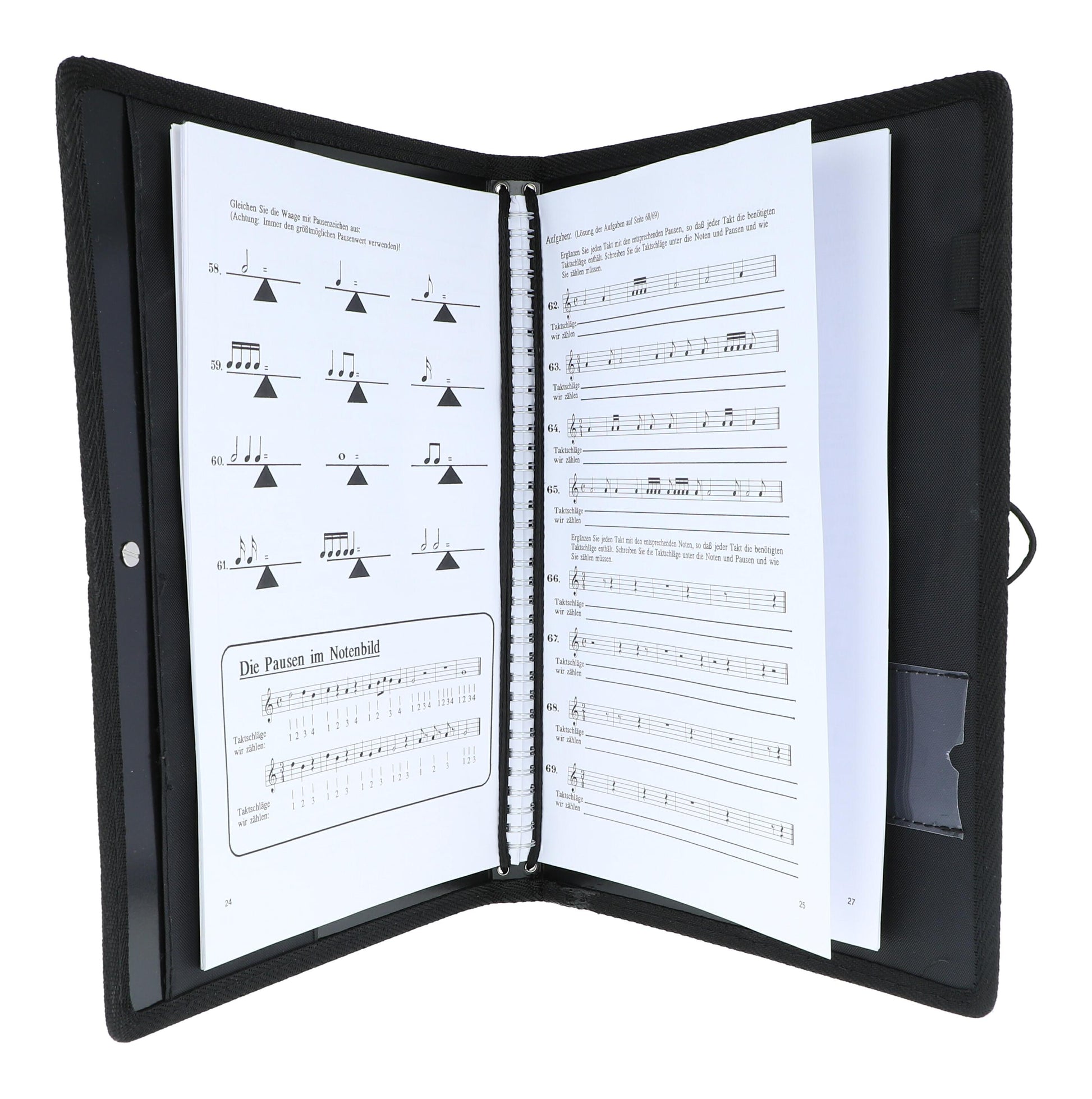 for 10 sheets of DIN A4 adjustable, inside holder for pen and name card