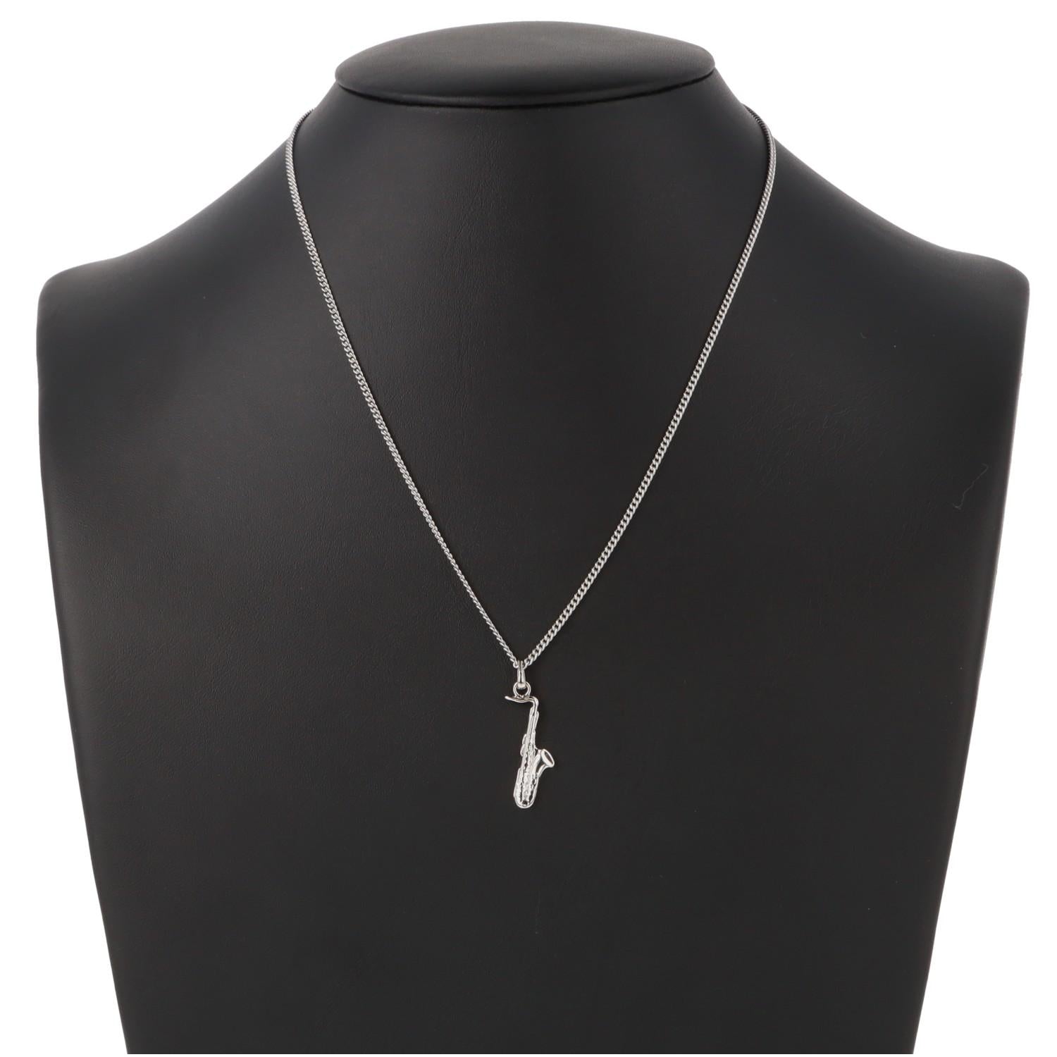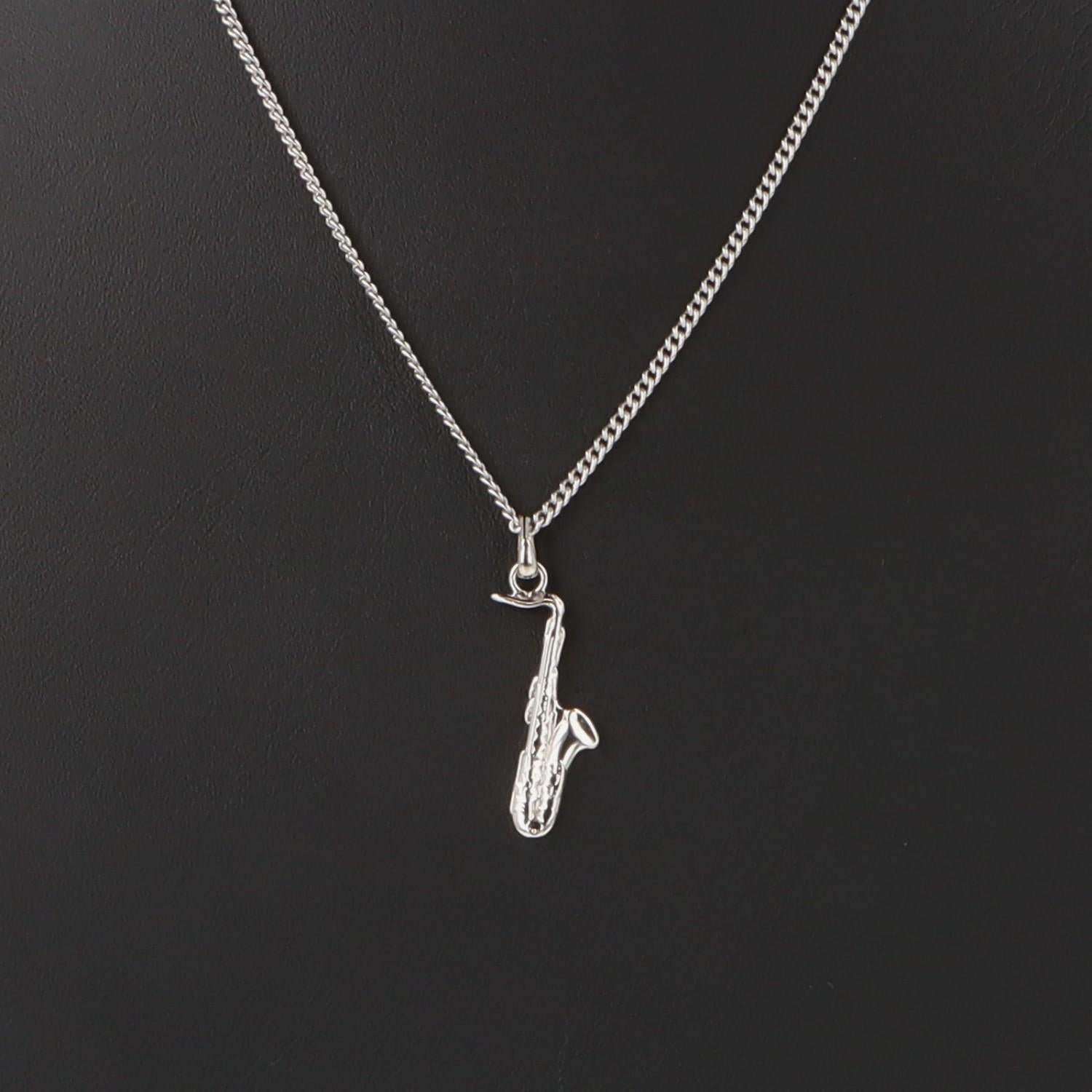 Saxophon-Anhänger, mit Kette, versilbert