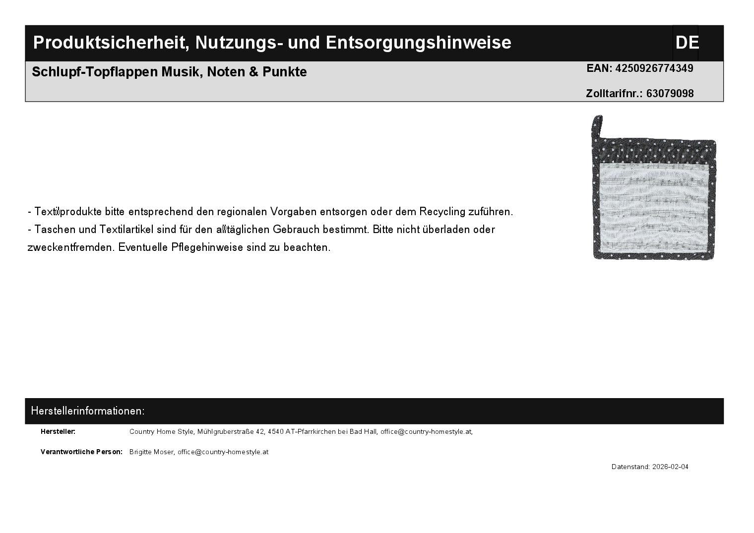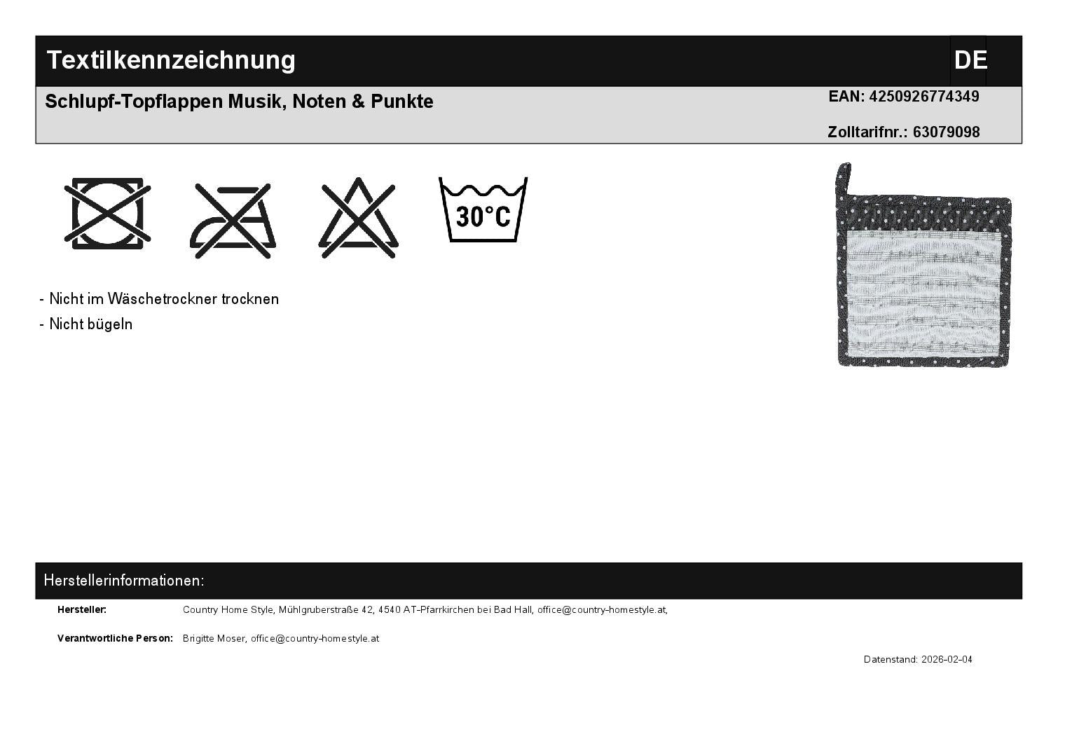 Slip-on Potholder Music, Notes & Dots