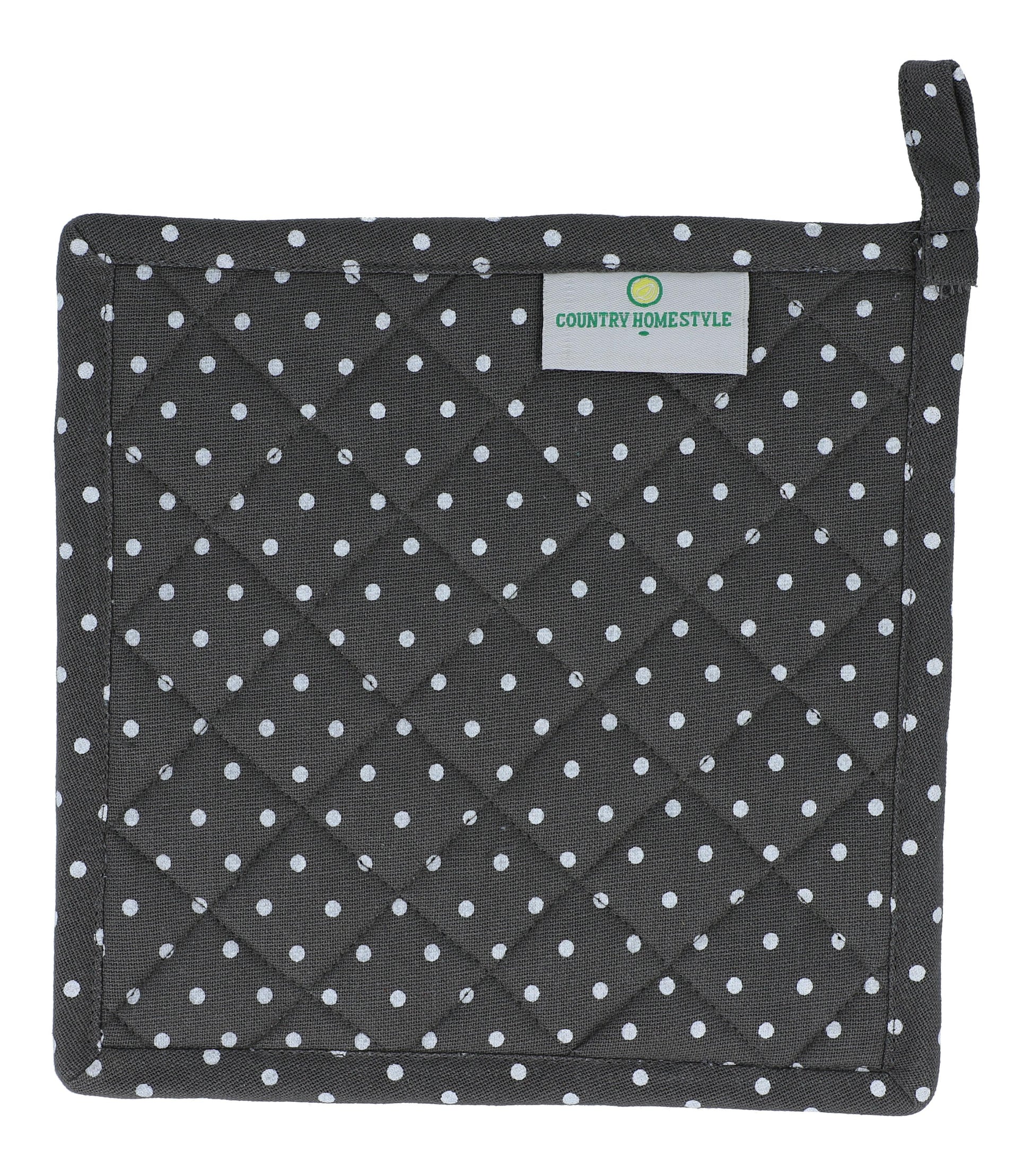 Slip-on pot holders with practical opening and loop.