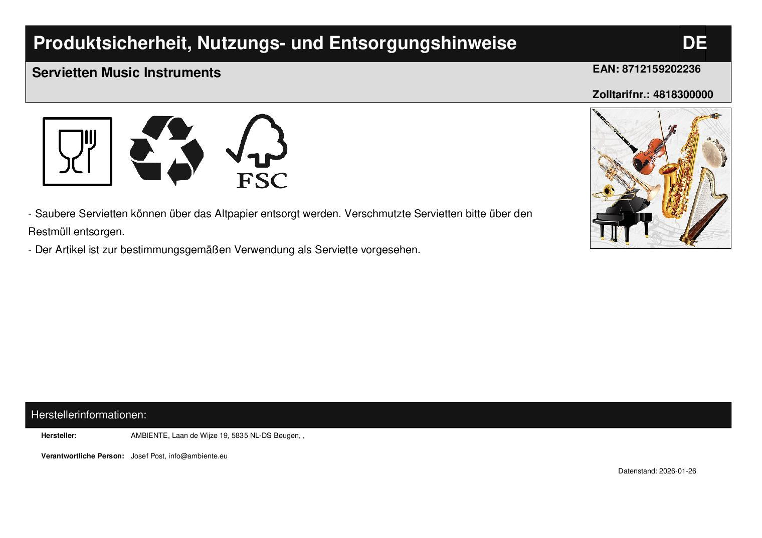 Servietten Music Instruments