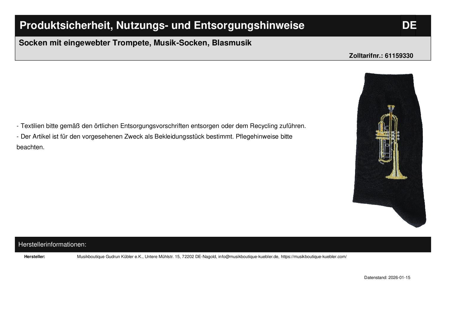 Socks with woven trumpet, music socks, brass music