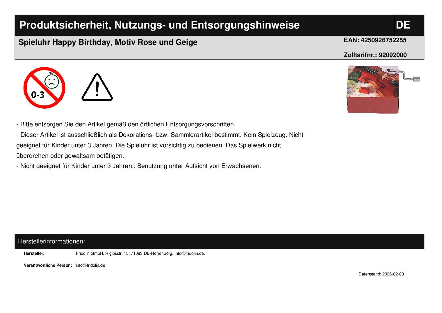 Happy Birthday music box, rose and violin motif