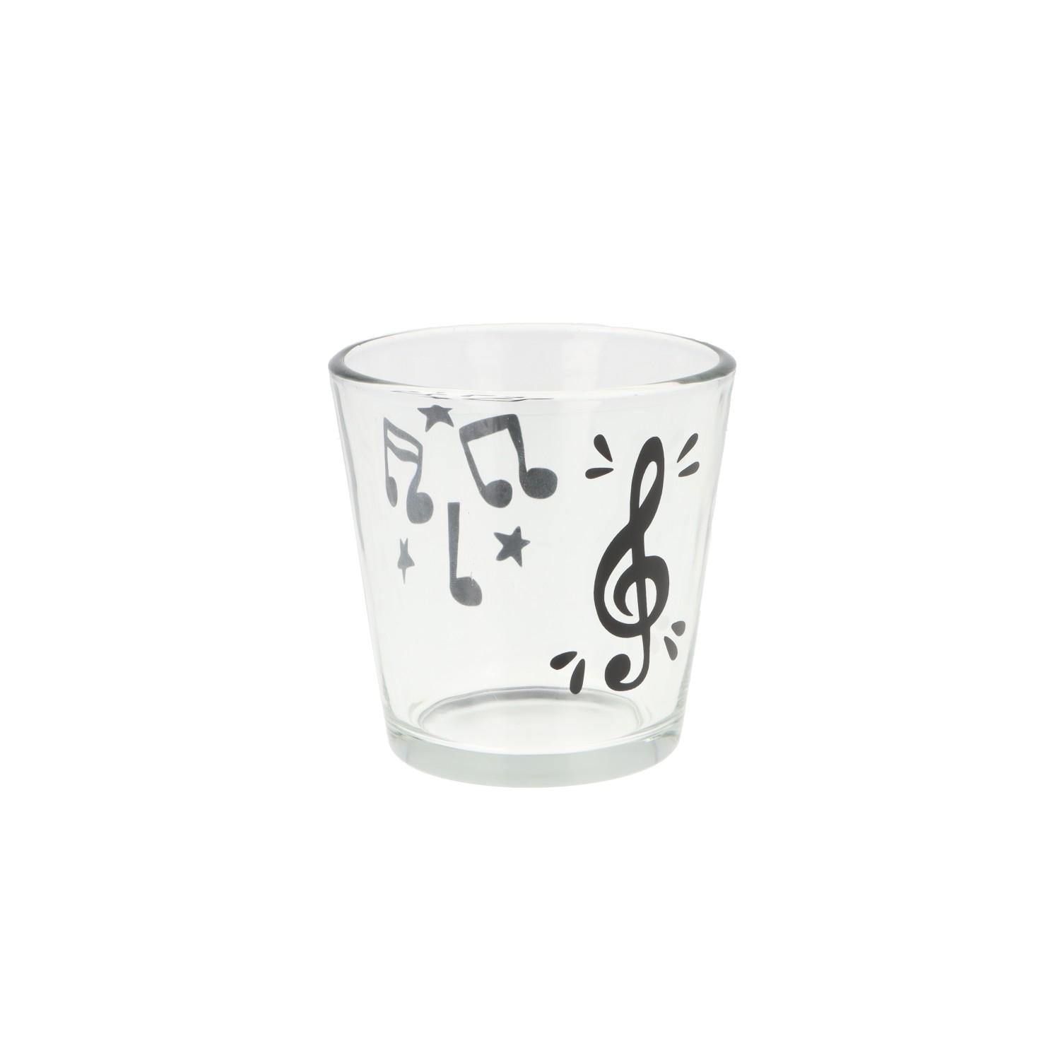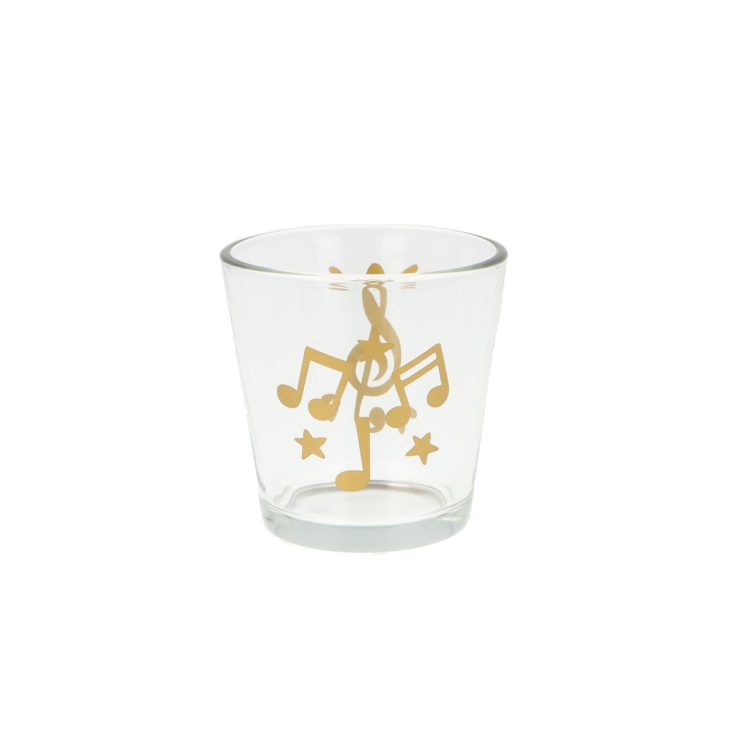 Teelichtglas mit Violinschlüssel, Noten und Sterne, Windlicht
