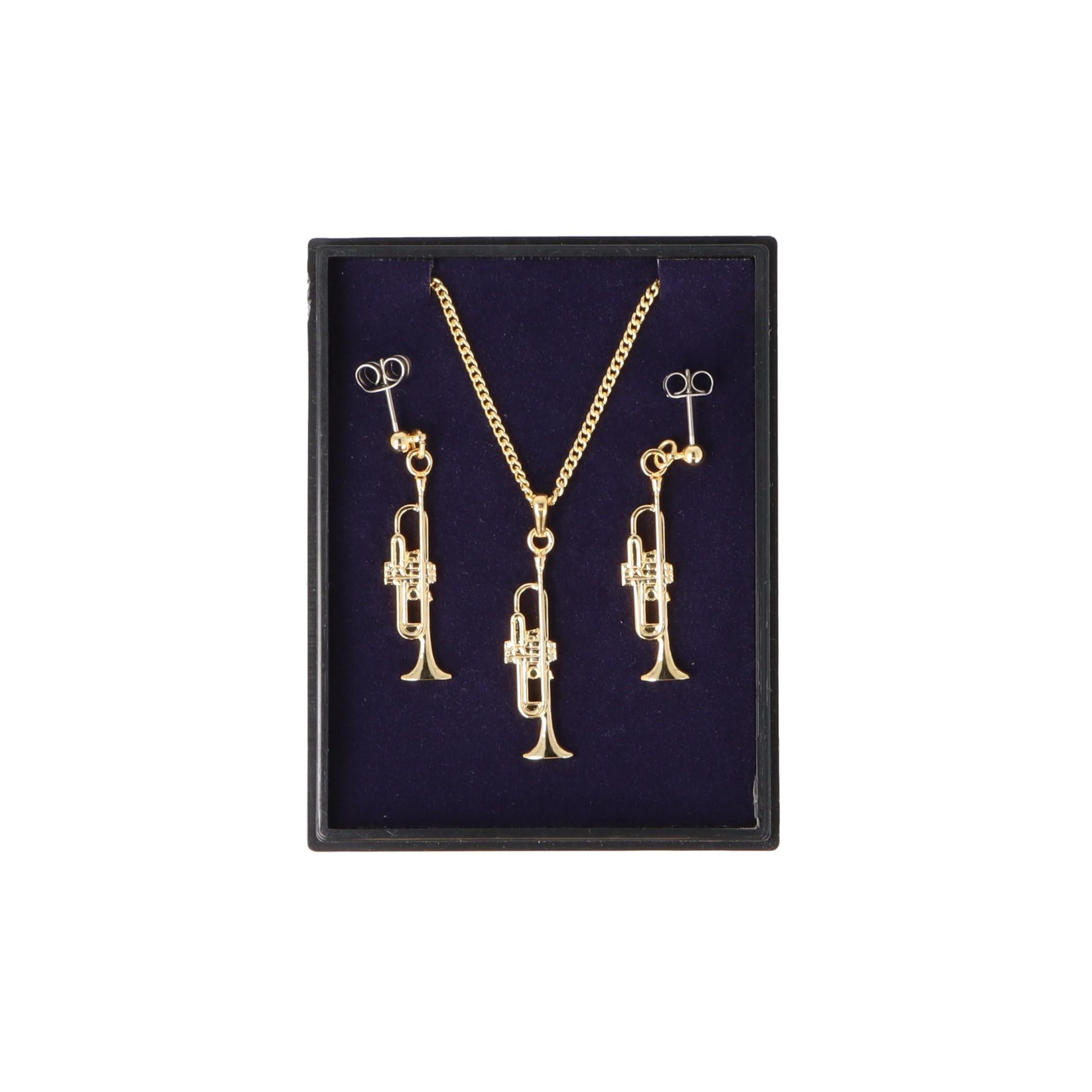 Trompete Ohrhänger und Anhänger mit Kette in Displaybox, versilbert oder vergoldet, Blasmusik