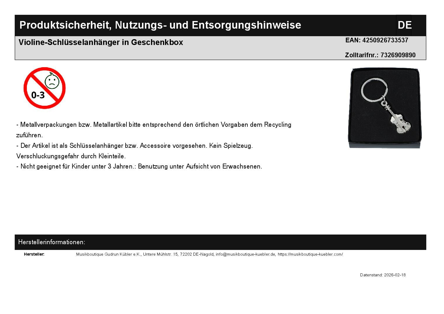 Length of violin approx. 5 cm, total approx. 8 cm, Ø key ring approx. 3 cm
