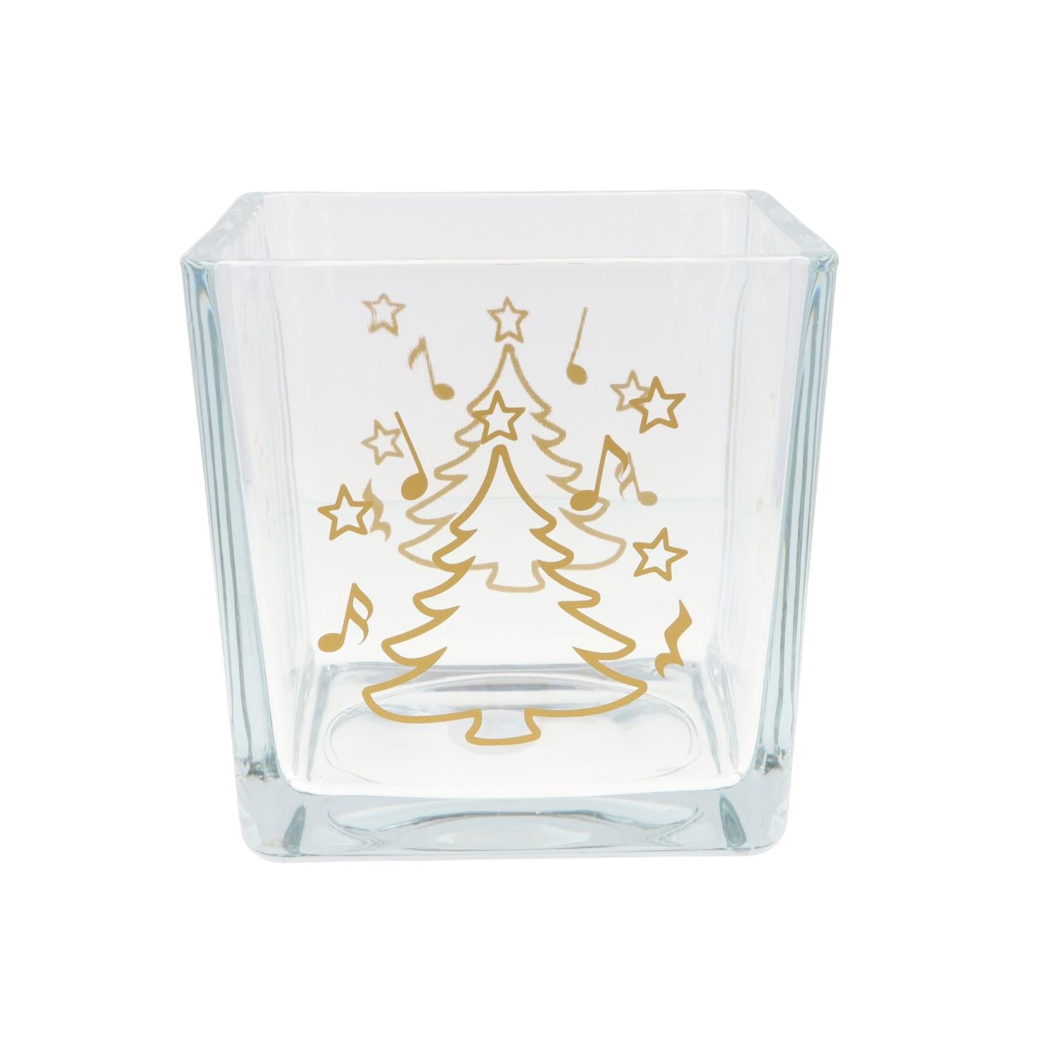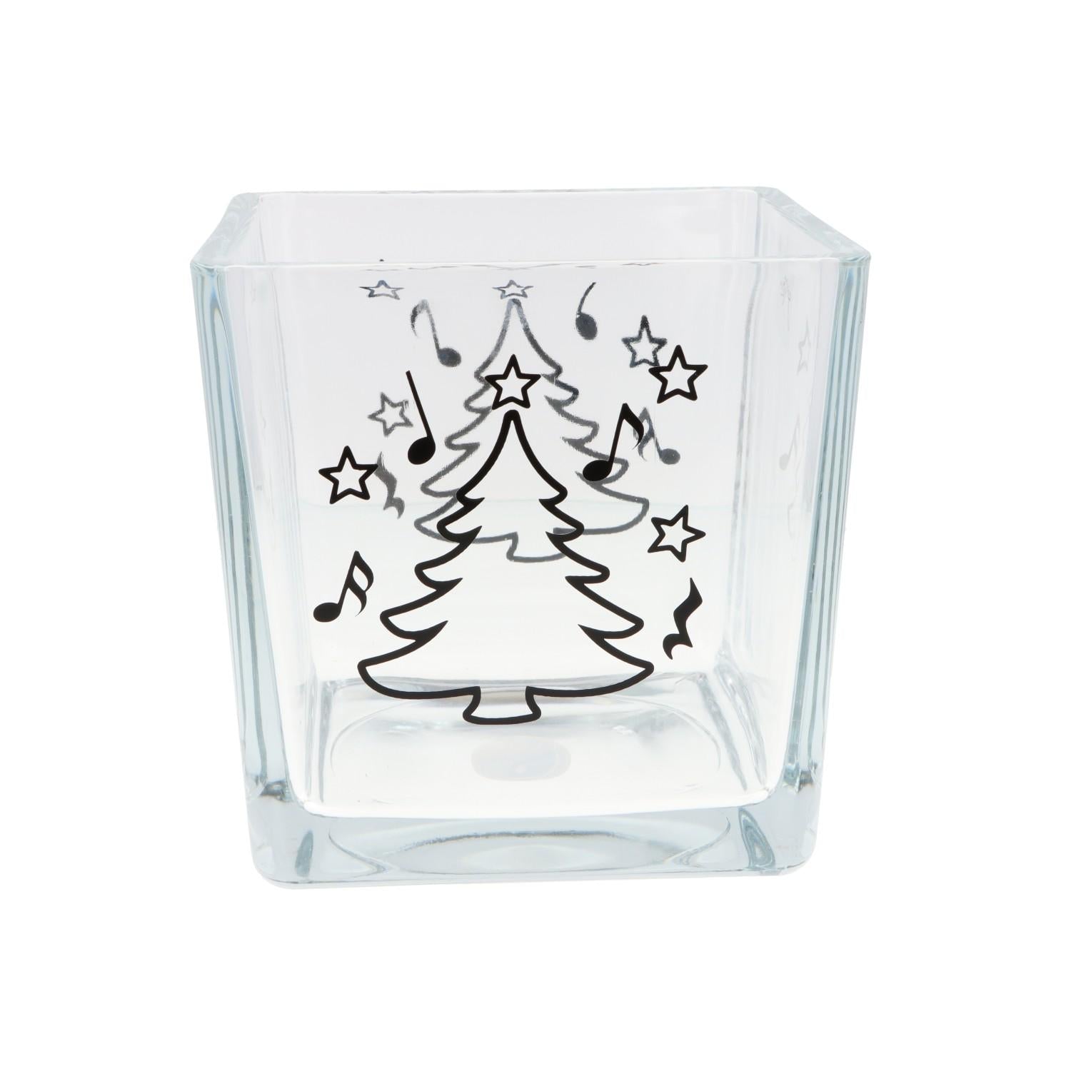 Weihnachtliche Glas-Vase mit Noten, Tannenbaum und Sternen (beidseitig)