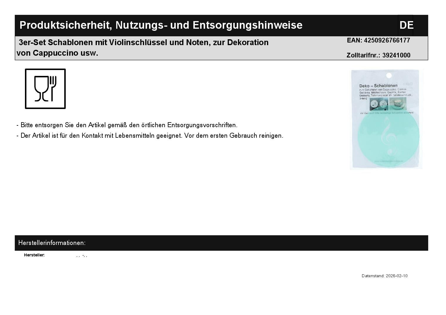 3er-Set Schablonen mit Violinschlüssel und Noten, zur Dekoration von Cappuccino usw.