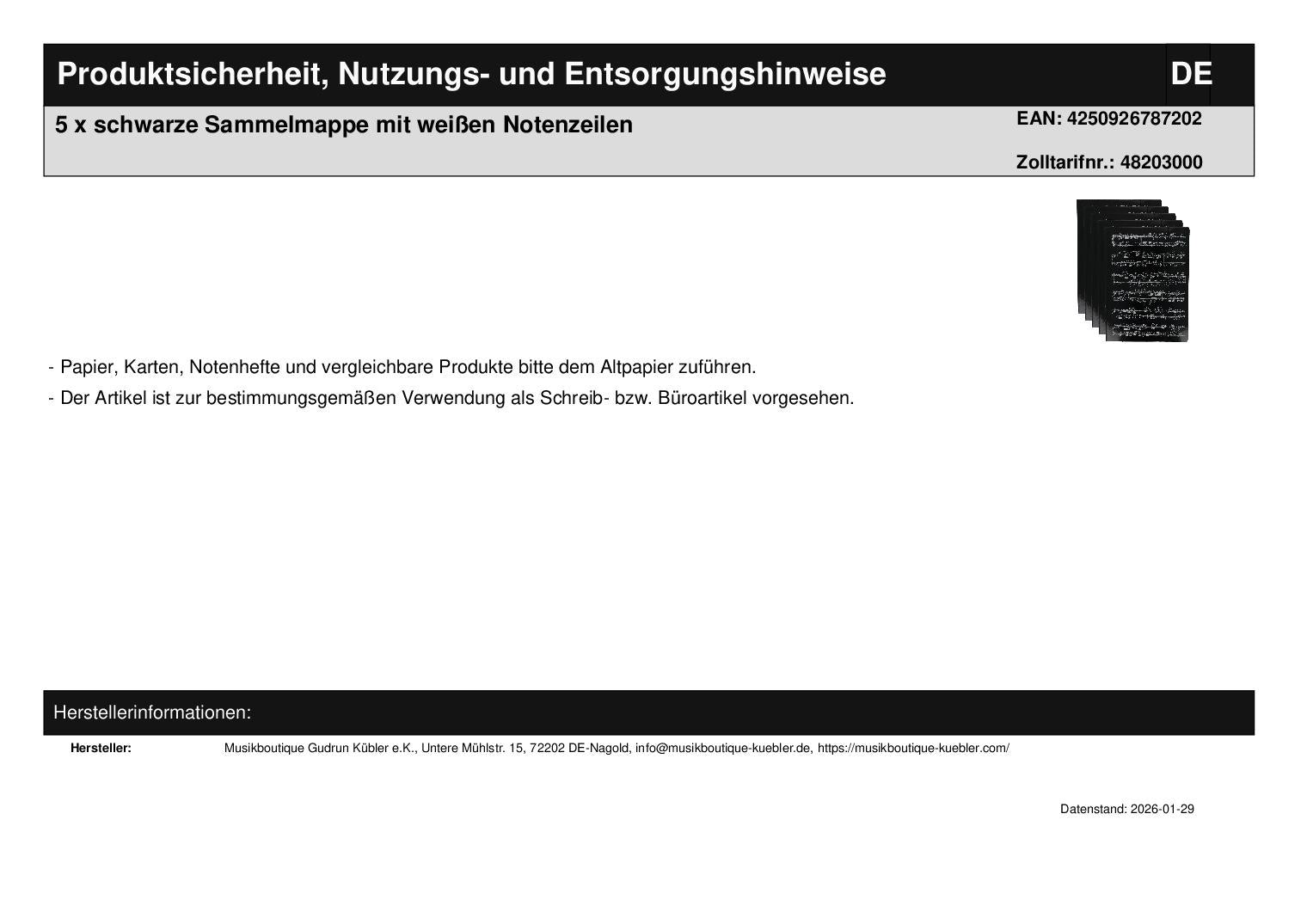 5 x schwarze Sammelmappe mit weißen Notenzeilen