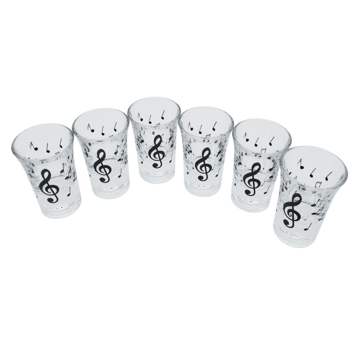 6er-Set Schnapsgläser mit schwarzem Violinschlüssel und Noten
