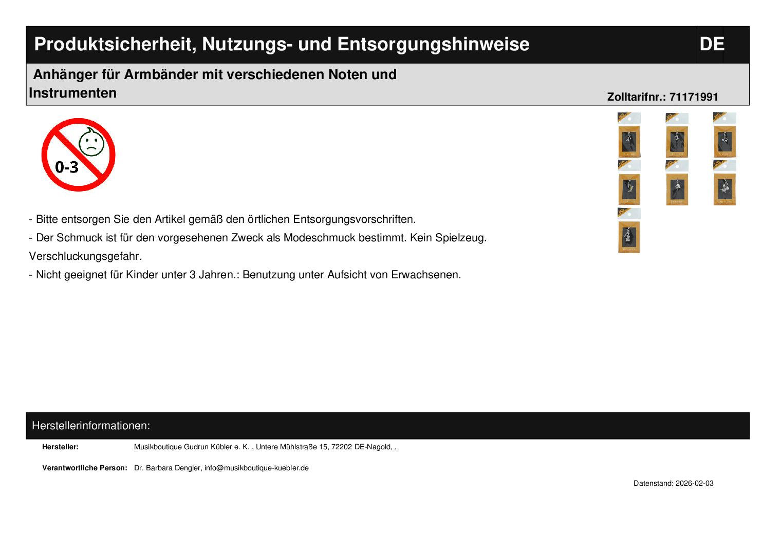 Anhänger für Armbänder mit verschiedenen Noten und Instrumenten