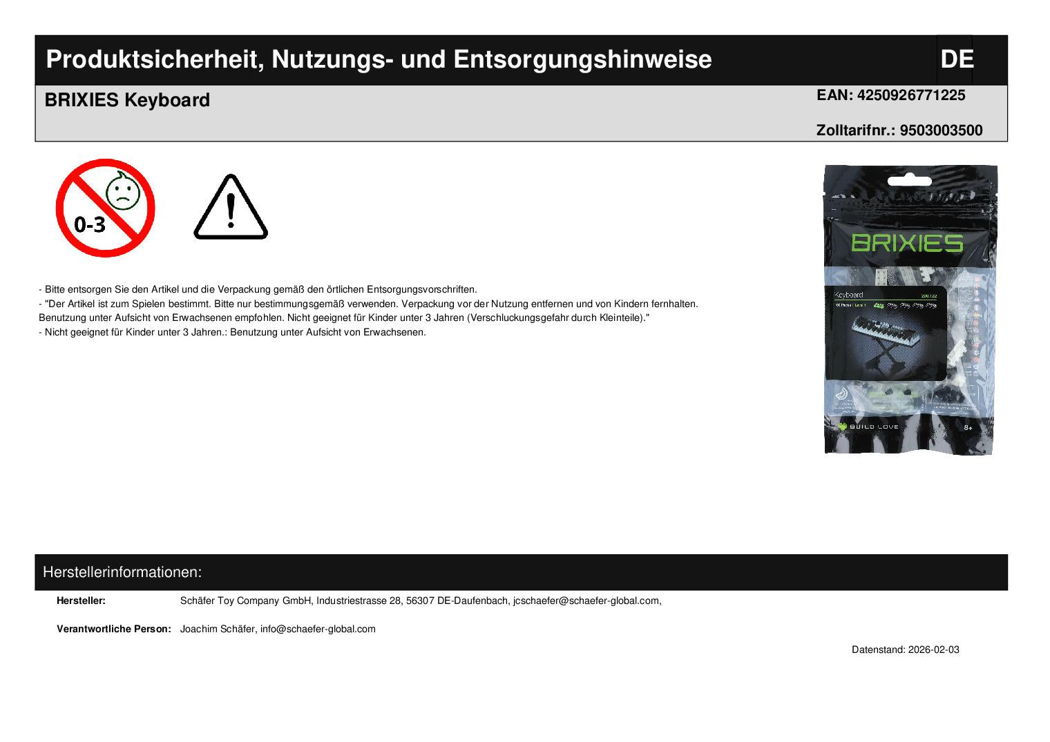 Das Modell besteht aus insgesamt 100 Steinen und ist zusammengebaut 9,5 cm lang, 2,2 cm breit und 5,5 cm hoch. Die Baustein-Sets von BRIXIES sind ab 8 Jahren geeignet. Die Bausteine bestehen aus hochwertigem ABS Kunststoff und entsprechen den aktuellsten Sicherheitsstandards. Dieser Bausatz des Schwierigkeitsgrads Stufe 1 fördert die Geschicklichkeit und Konzentration