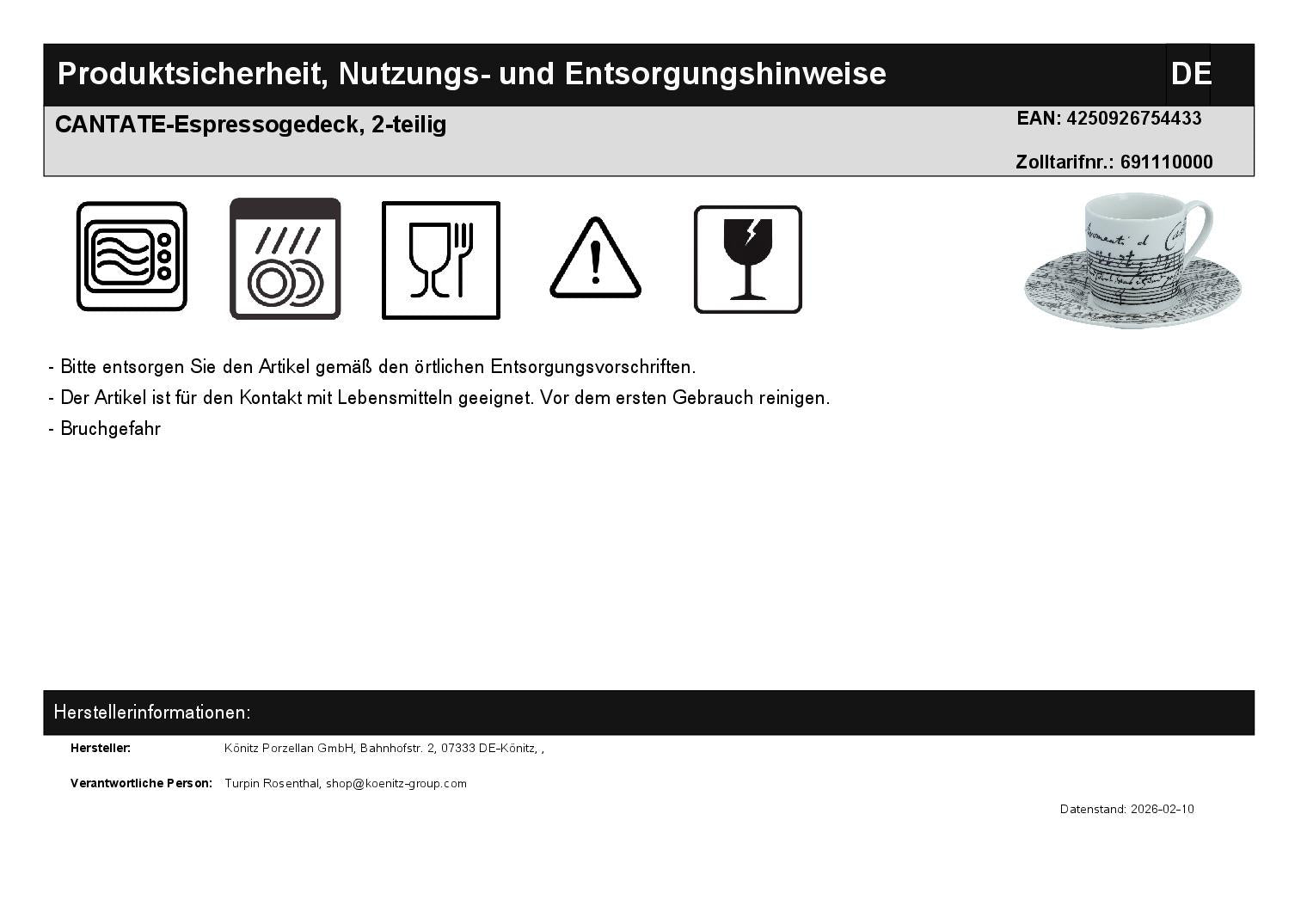 CANTATE-Espressogedeck, 2-teilig