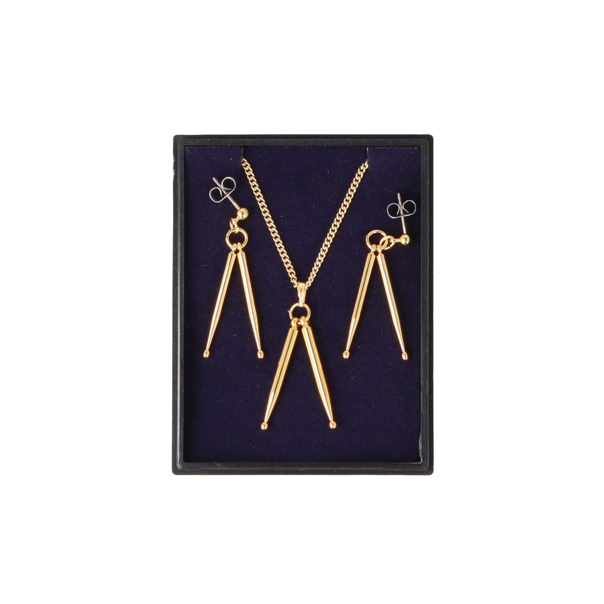 Drumsticks Ohrhänger und Anhänger mit Kette in Displaybox, vergoldet