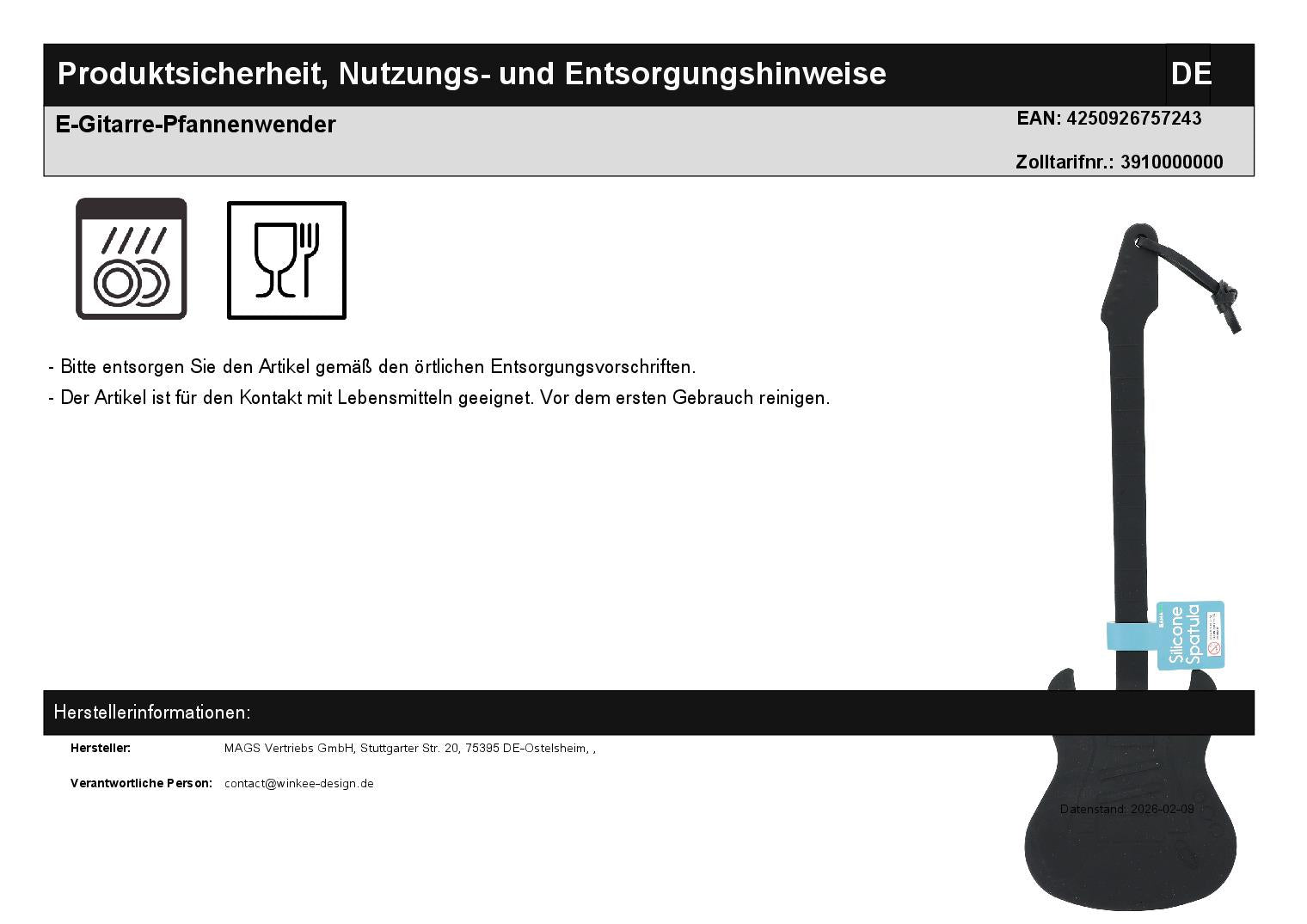 Pfannenwender E-Gitarre, schwarz