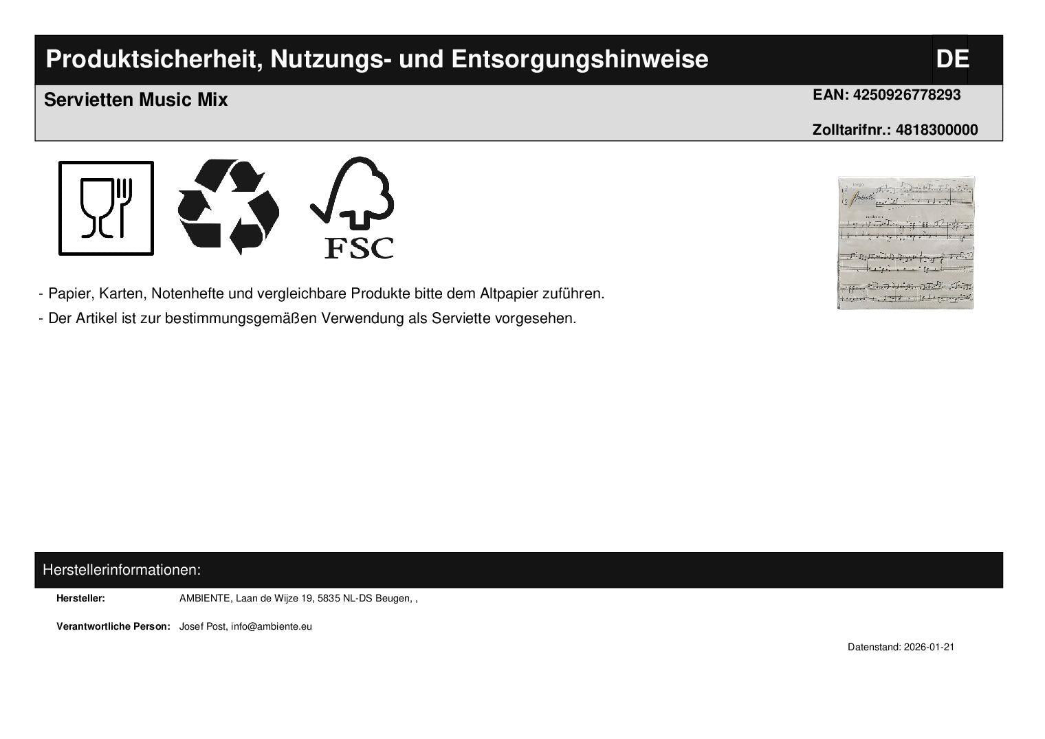 1 x Servietten "Black Sonata", Noten