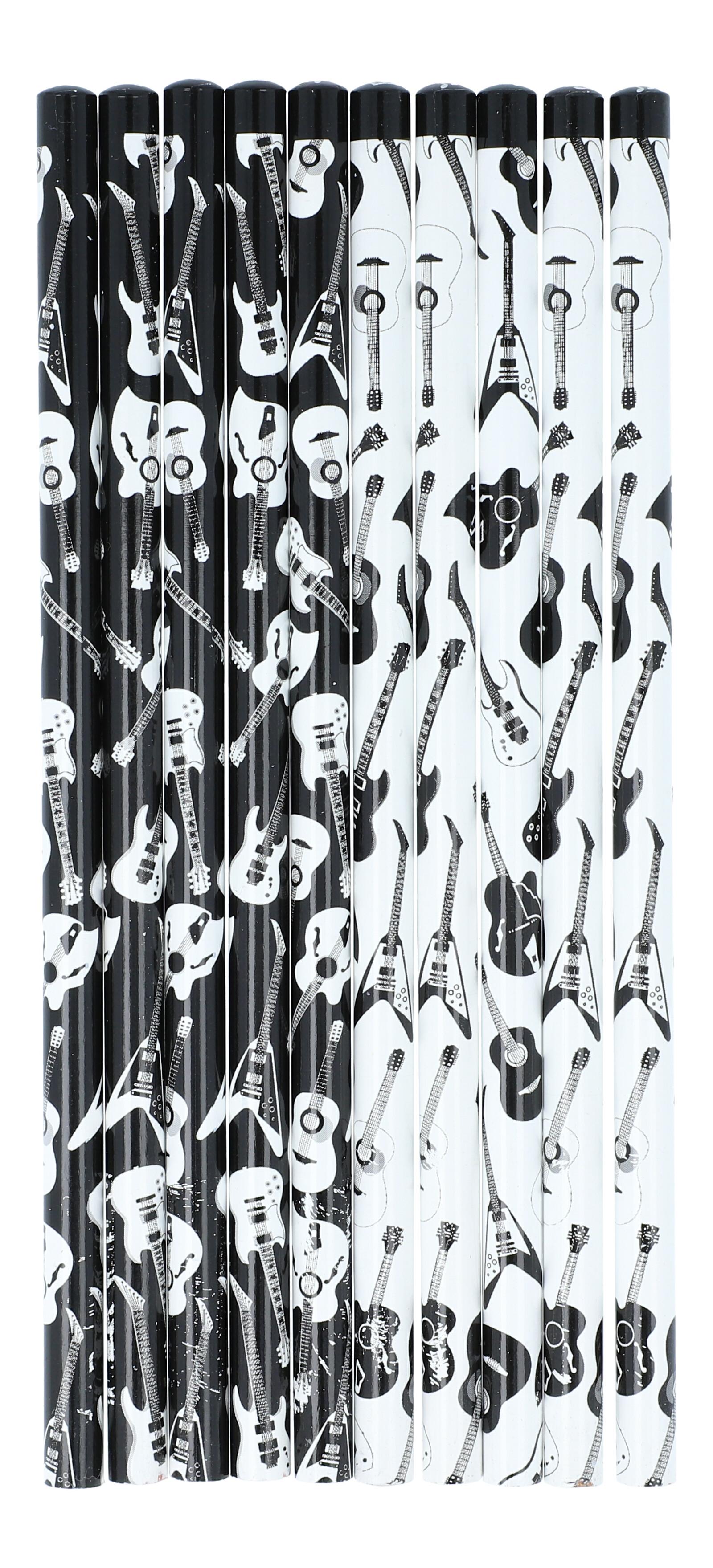 Gitarren-Bleistifte mit Konzert- und E-Gitarren. Die Bleistifte liegen dank ihrer ergonomische Form gut in der Hand und eignen sich sowohl für Notizen im Musikunterricht als auch für kreative Skizzen zu Ihrer Lieblingsmusik.