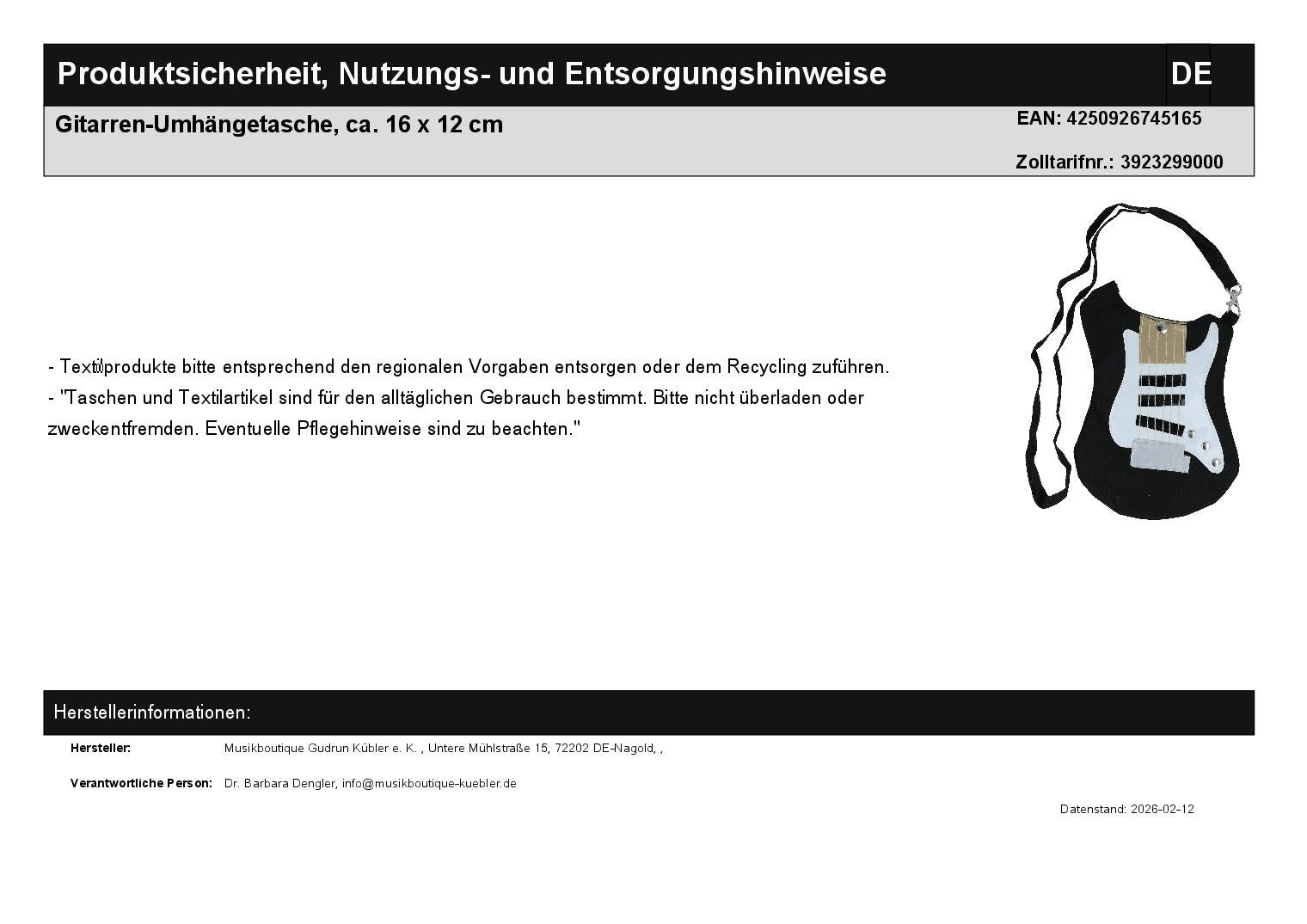 Gitarren-Umhängetasche, ca. 16 x 12 cm