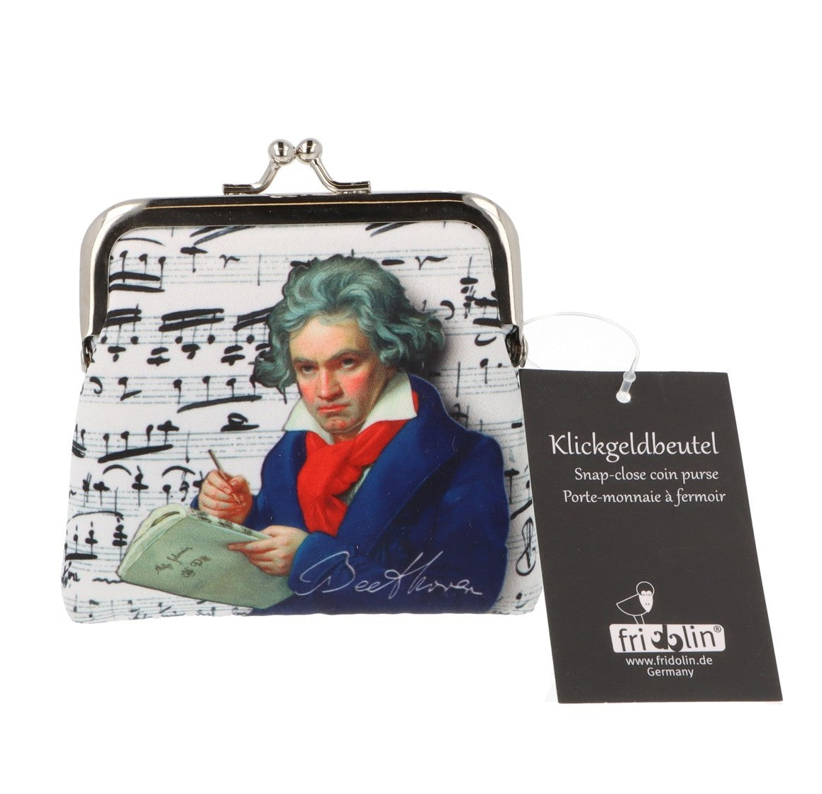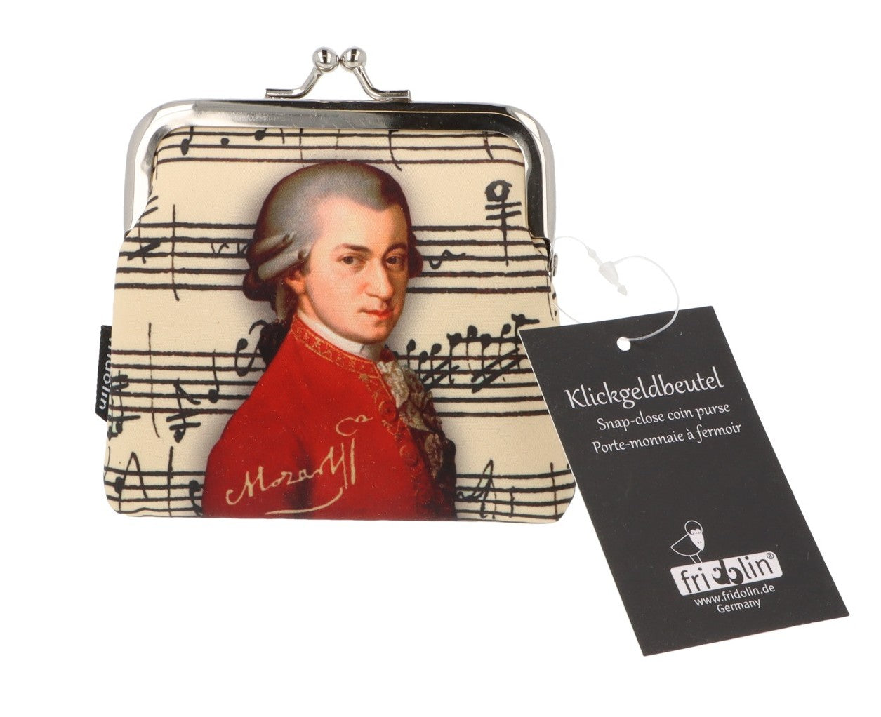 Klick-Geldbörsen, Portrait und Noten von Mozart oder Beethoven