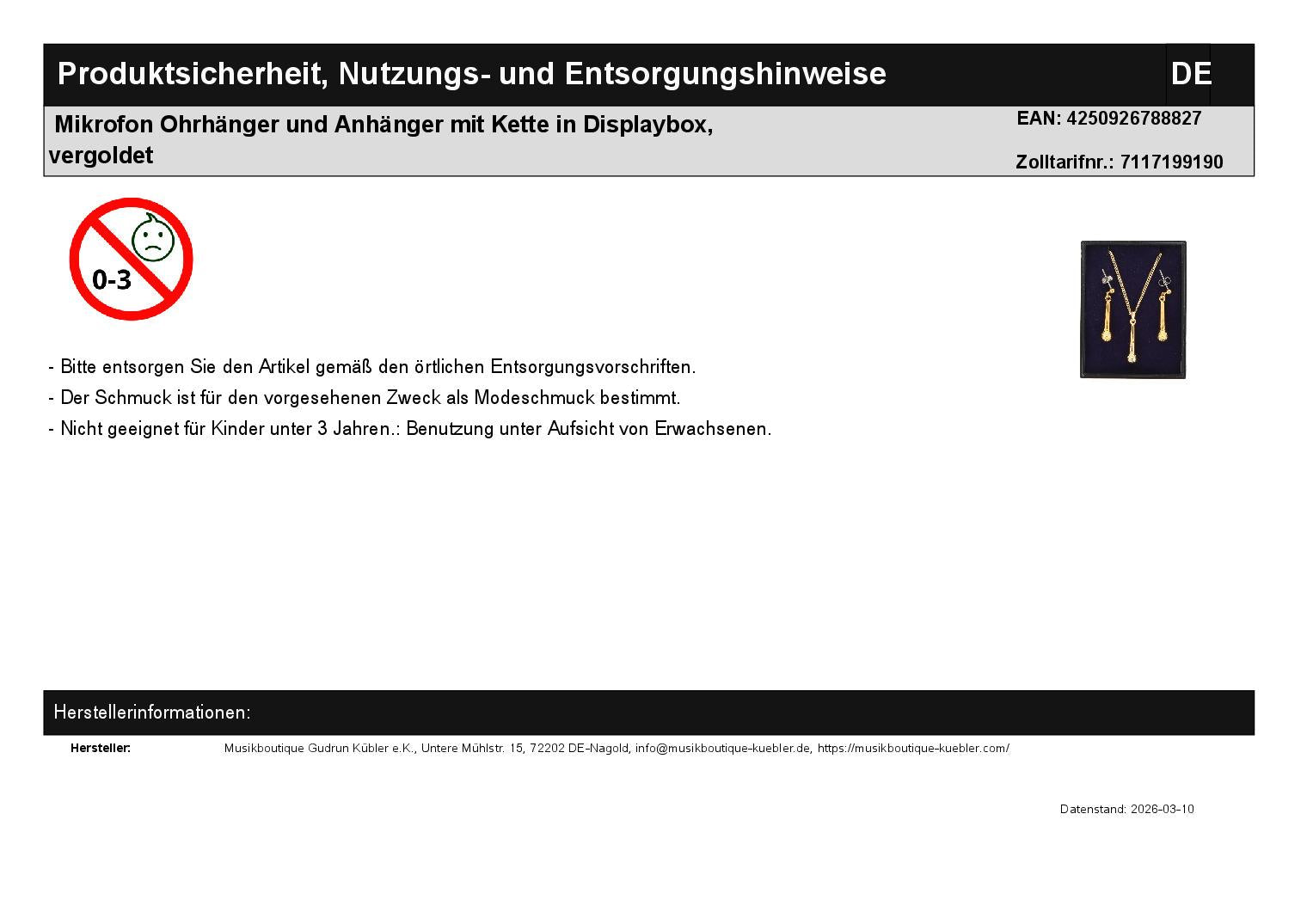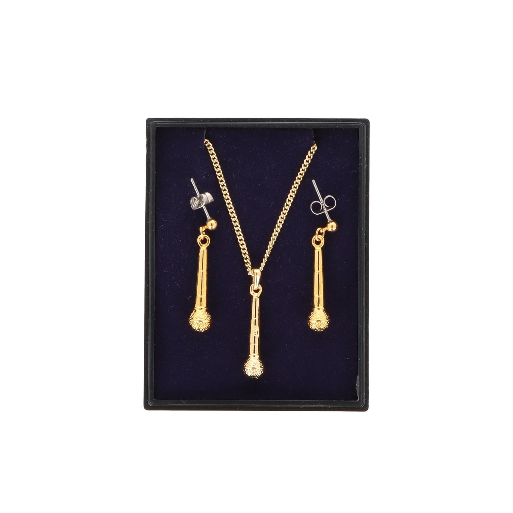 Mikrofon Ohrhänger und Anhänger mit Kette in Displaybox, vergoldet