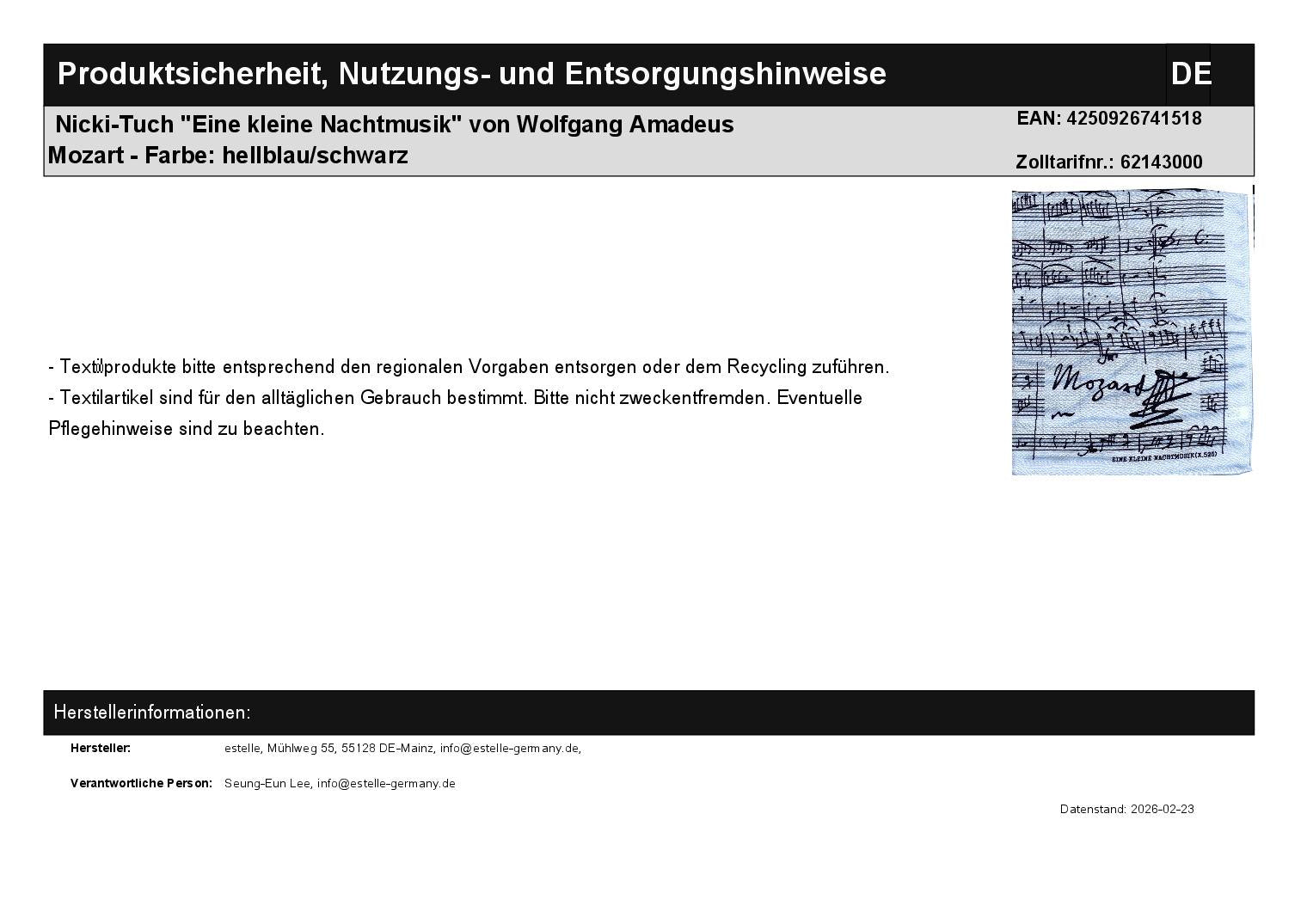 - Design: Noten von "Eine kleine Nachtmusik"
