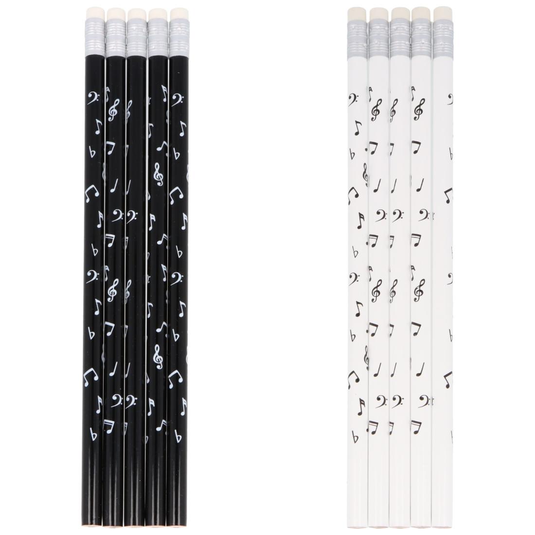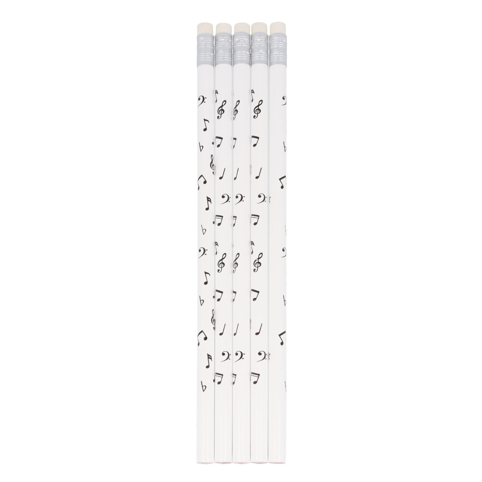 Noten-Mix-Bleistifte mit Radiergummi, Noten, Violinschlüssel, Bassschlüssel in weiß oder schwarz