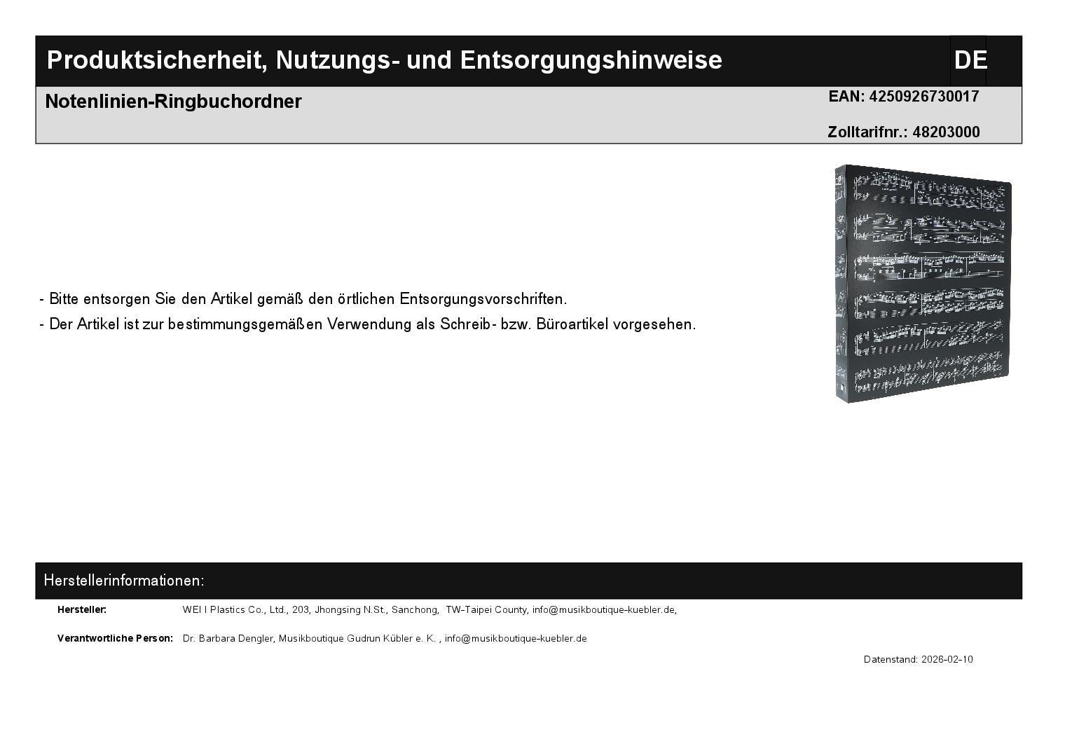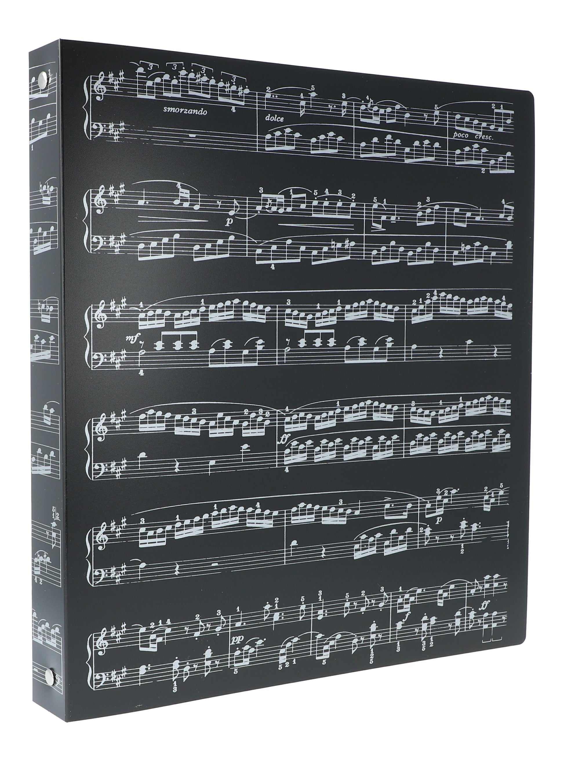 schwarzer Ringbuchorder mit weißen Notenlinien
