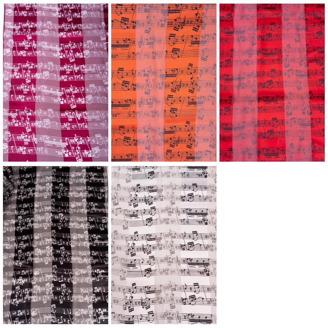 Notenlinien-Schal mit Satinstreifen in fünf verschiedenen Farben