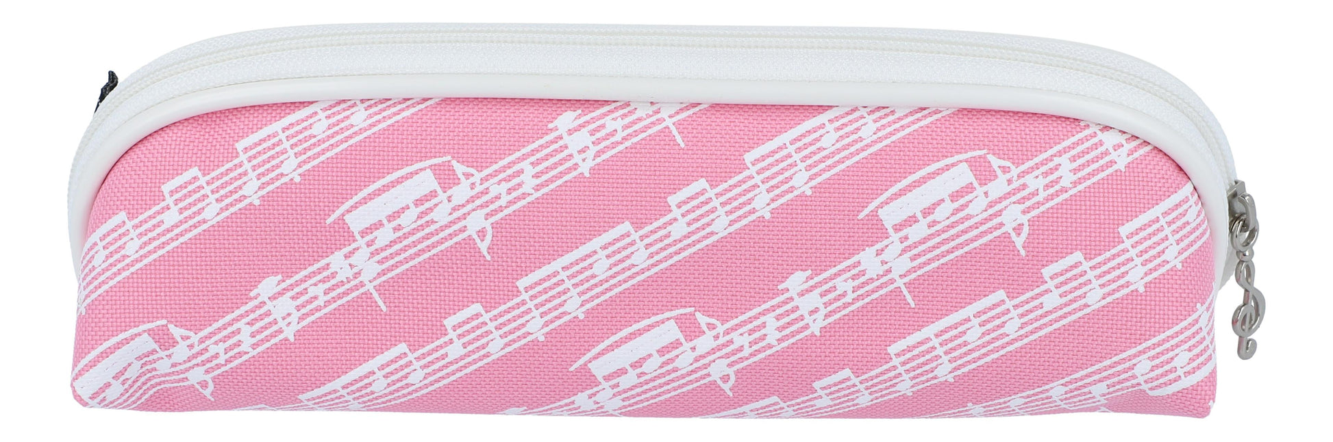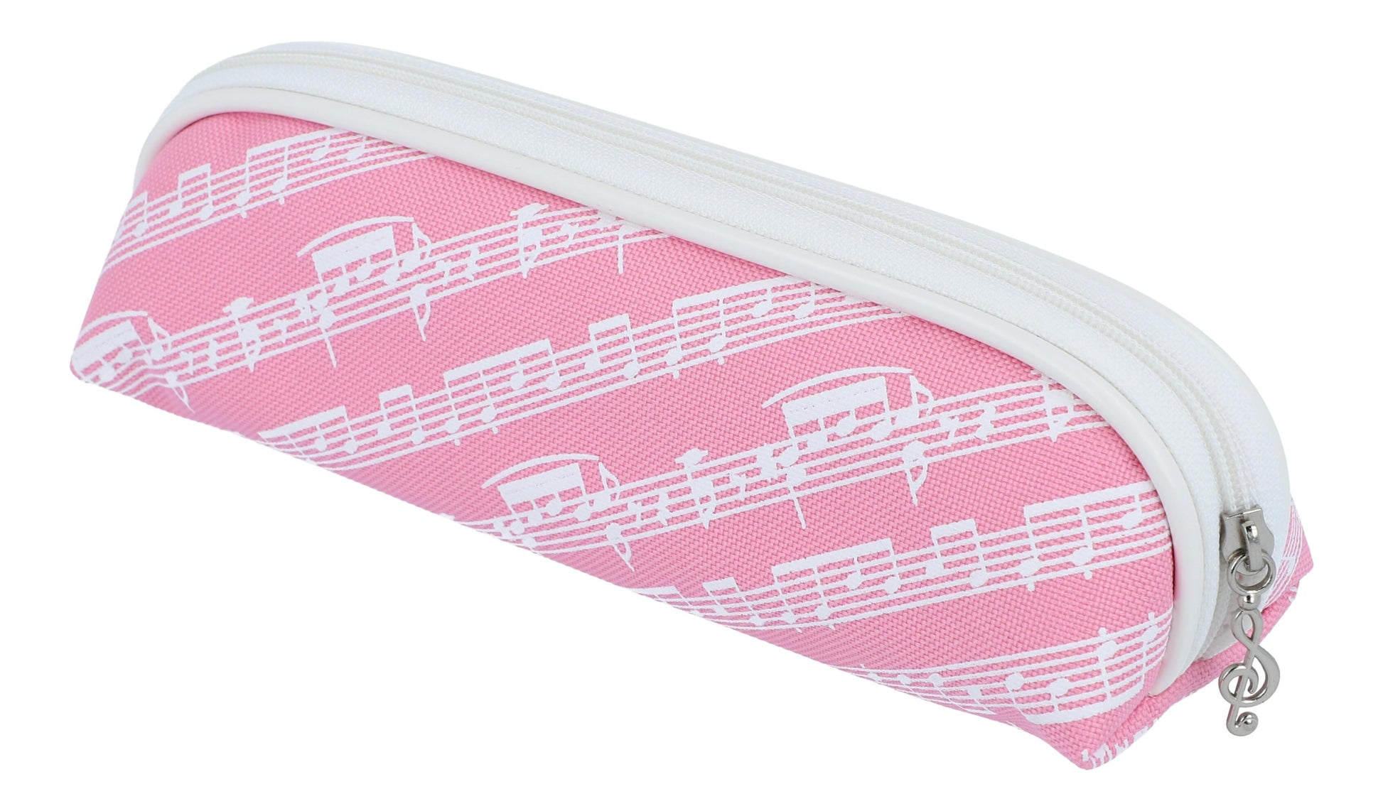 pinkes Stiftmäppchen mit weißen Notenlinien