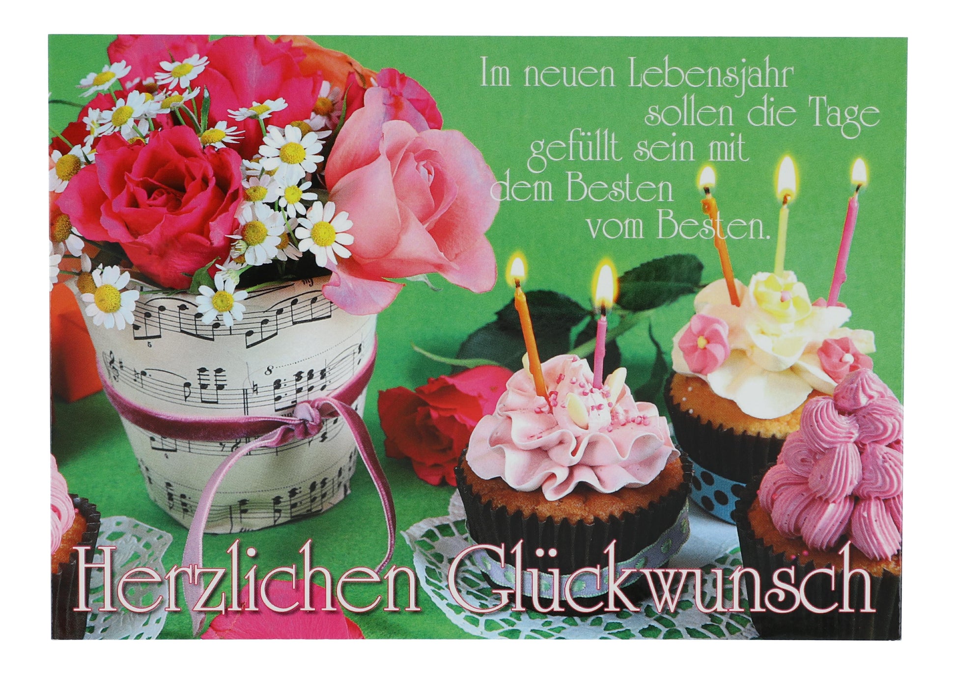 Postkarte "Im neuen Lebensjahr sollen die Tage gefüllt sein mit dem Besten vom Besten. Herzlichen Glückwunsch"