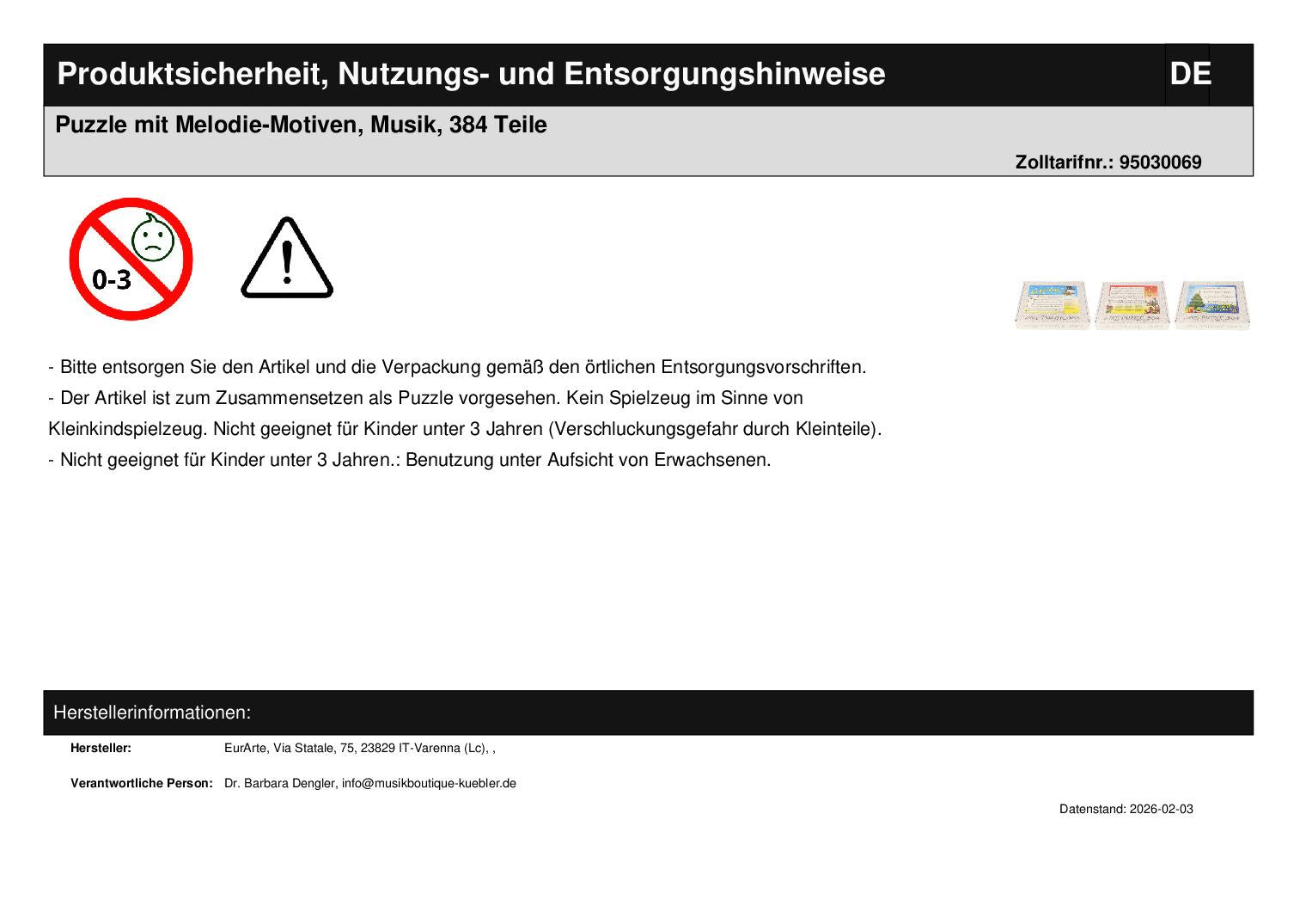 Entdecken Sie ein einzigartiges Puzzle-Erlebnis mit unseren "Puzzle mit Melodie-Motiven". Dieses faszinierende Spiel besteht aus 384 Teilen und vereint die Kunst des Puzzelns mit der Schönheit der Musik. Jedes Puzzlestück ist sorgfältig gestaltet, um Musikliebhaber und Puzzle-Enthusiasten gleichermaßen zu begeistern. Die Motive sind von klassischen Musikstücken inspiriert und bieten eine visuelle Sinfonie, die Geduld, Konzentration und Kreativität erfordert.