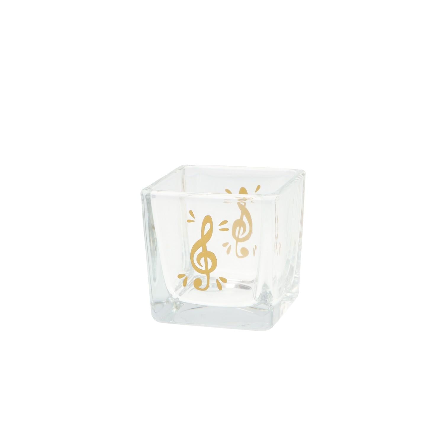 quadratisches Teelichtglas mit Violinschlüssel, Windlicht