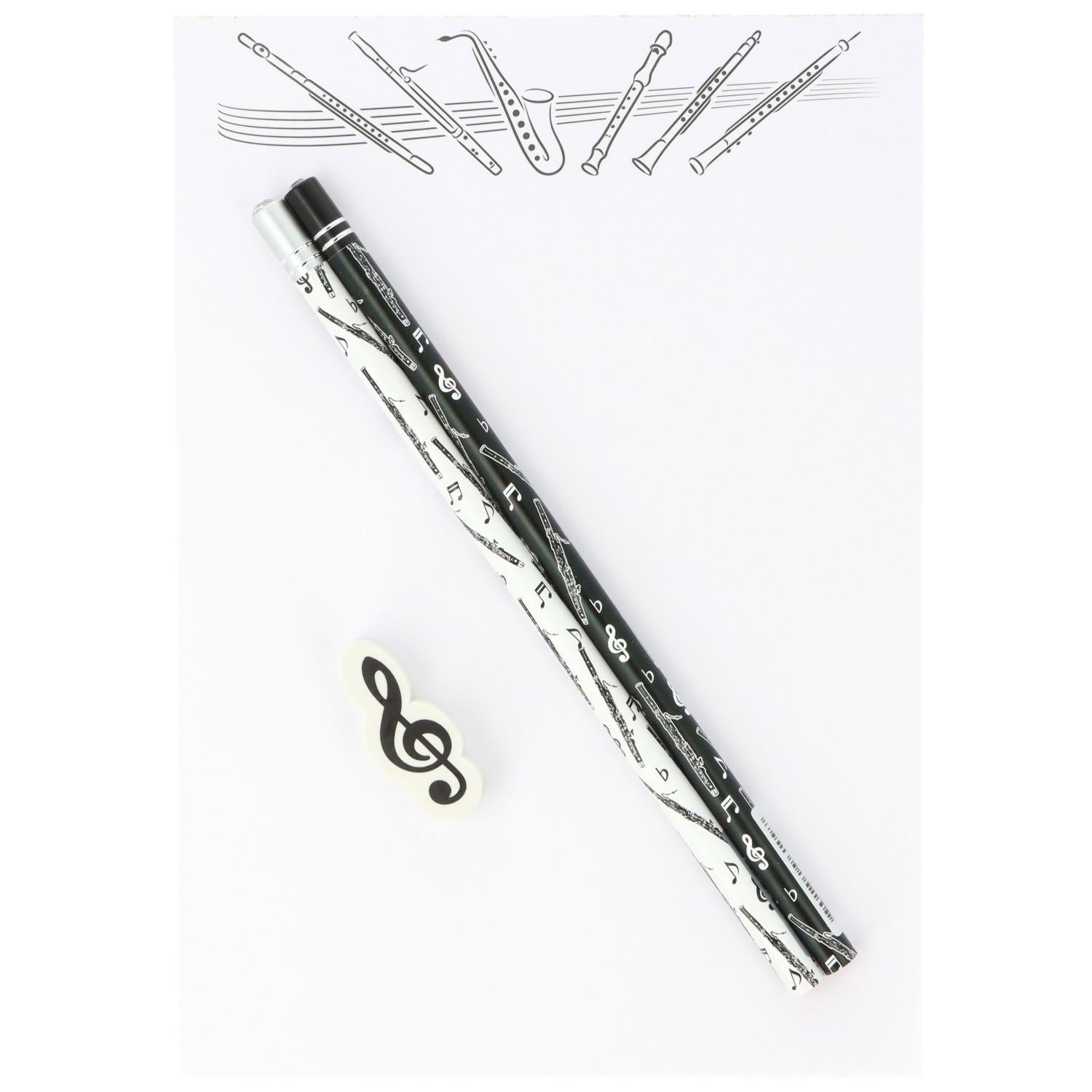 Schreibset mit Notizblock A5 "Holzblasinstrumenten", Bleistiften und Radiergummi