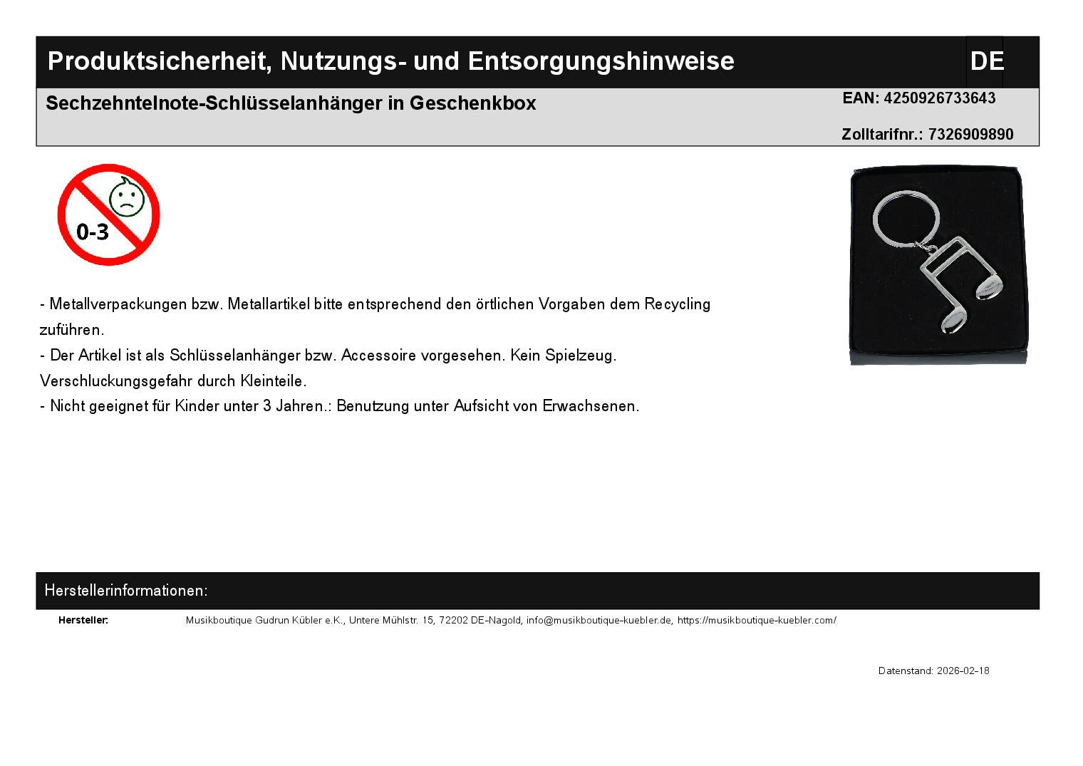 Schlüsselanhänger Sechzehntelnote in Geschenkbox