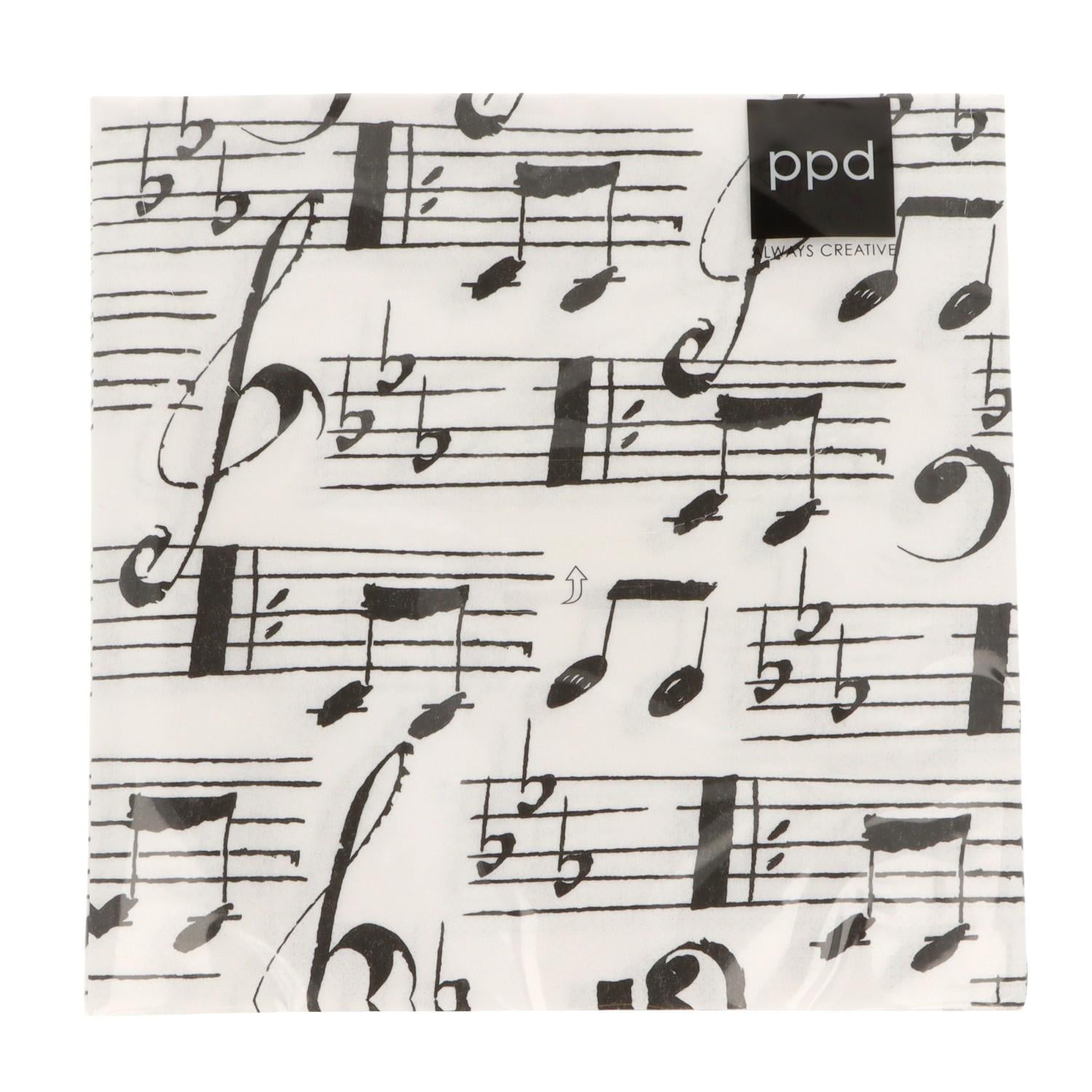 Servietten "Musique" in schwarz/weiß mit Notenlinien, Noten und Violinschlüssel