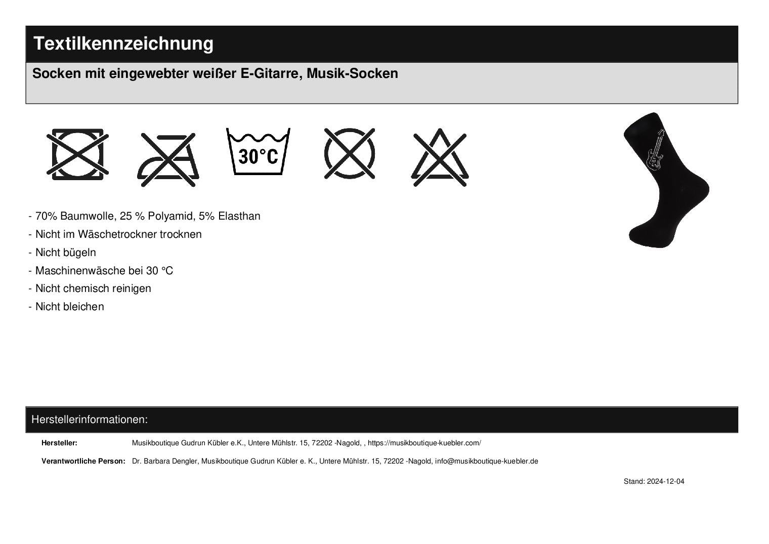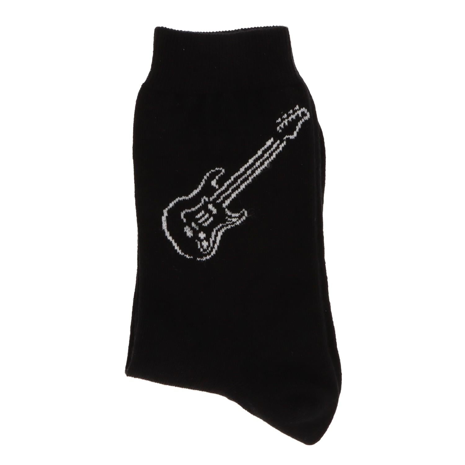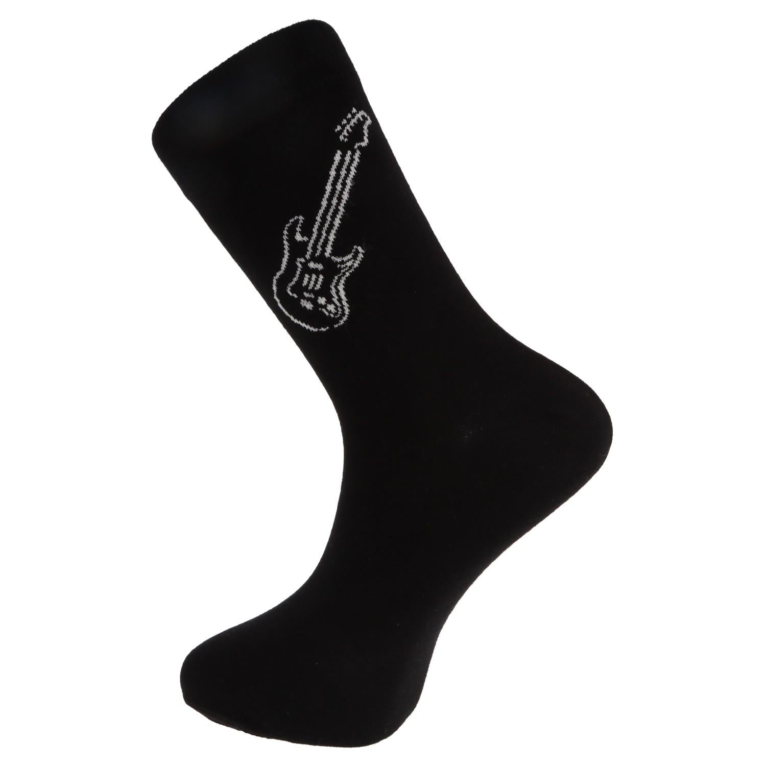 Sockengrundfarbe schwarz mit eingewebter E- Gitarre