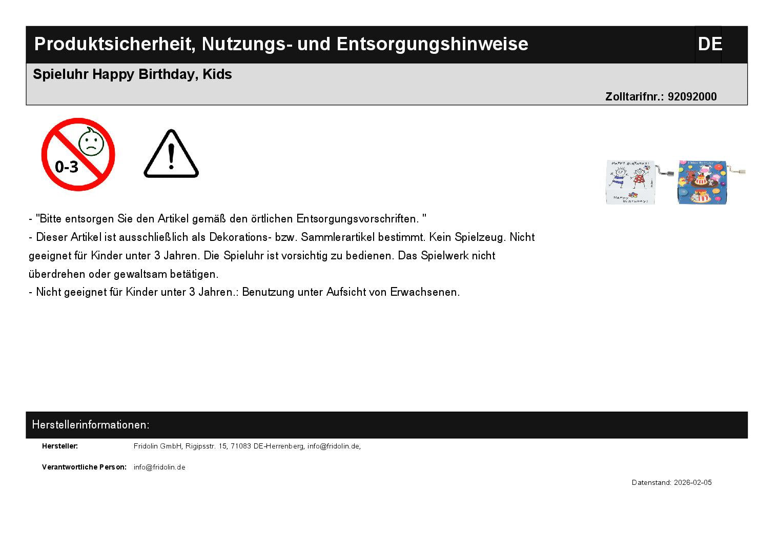 Spieluhr Happy Birthday, Kids