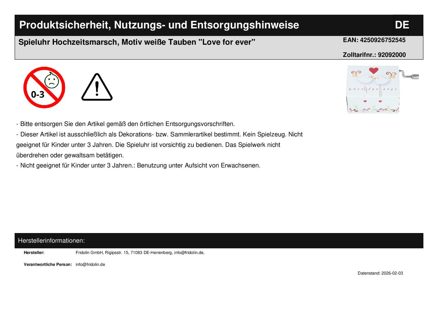 • Produkttyp: Spieluhr mit Kurbel