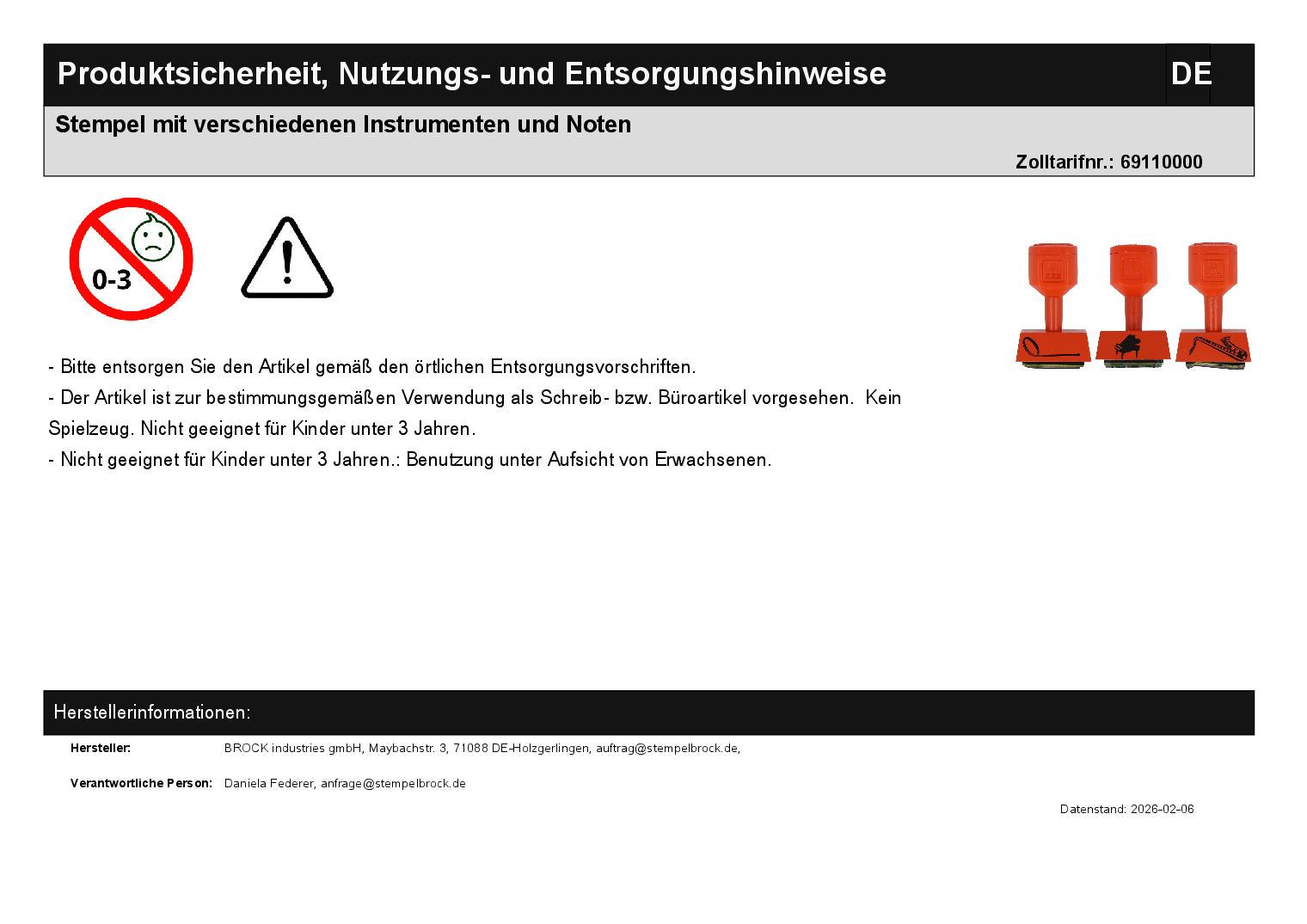 Stempel mit verschiedenen Instrumenten und Noten