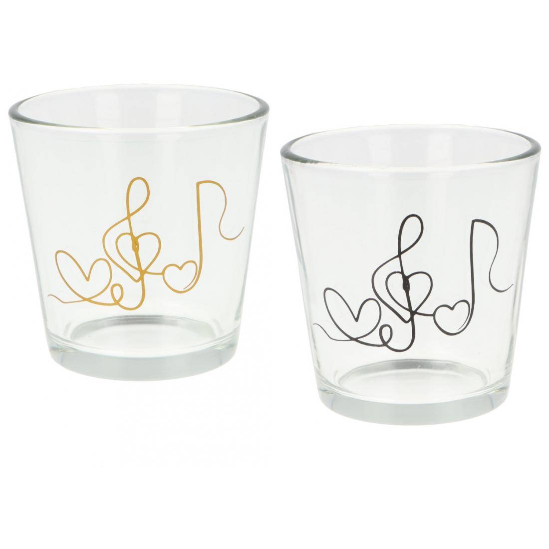 Teelichtglas mit Herz, Violinschlüssel und Note, Windlicht